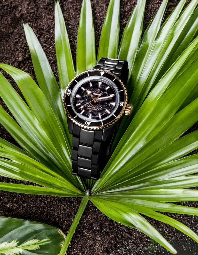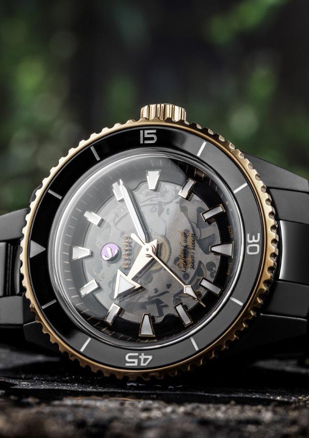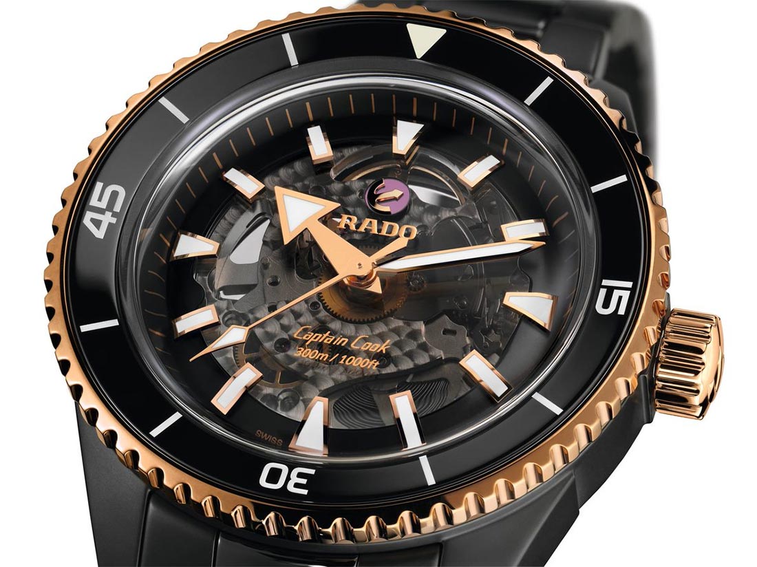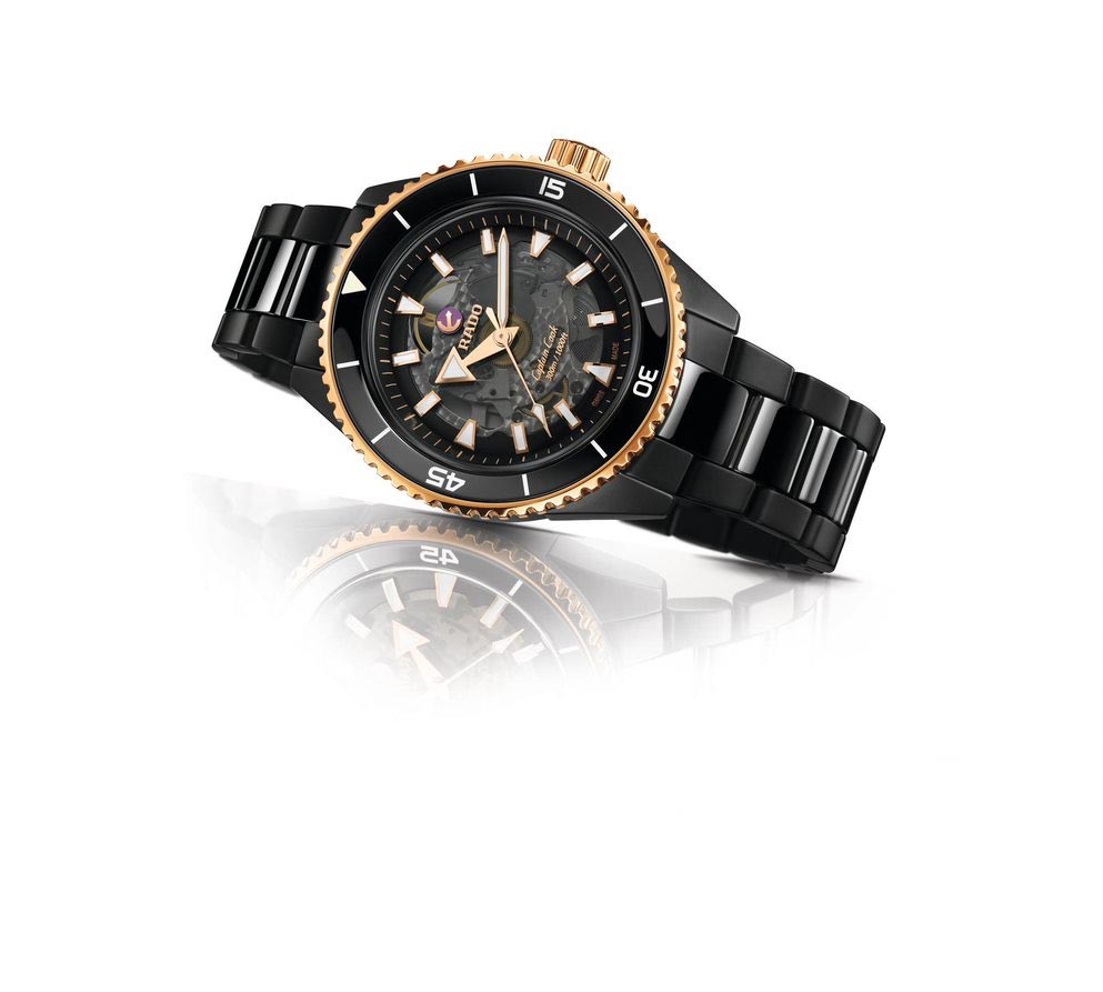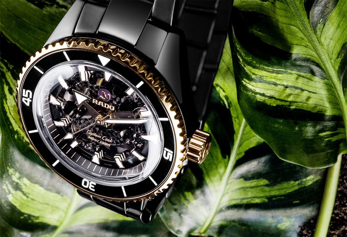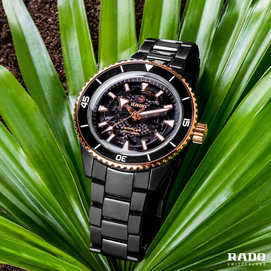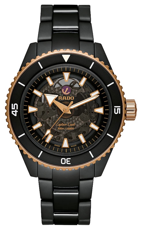 Rado Captain Cook High-Tech Ceramic R32127162 se vyznačuje jedním z nejušlechtilejších počinů značky - inovativní a technologicky vyspělou konstrukcí keramického monoblokového pouzdra, nepoškrábanou, hypoalergenní a na dotek příjemnou high-tech keramikou. jako prémiový mechanismus s inovativním, chránícím hodinky před magnetickým polem s vlasovou pružinou Nivachron™. Uživatel má možnost obdivovat jeho práci jak díky skeletovému ciferníku, tak zadní části pouzdra ze safírového skla, které je voděodolné do cca 300 m.