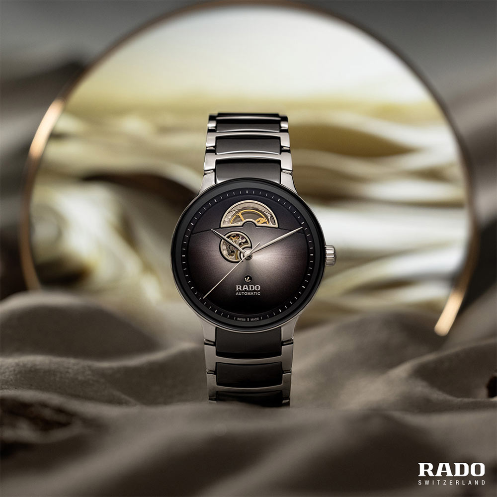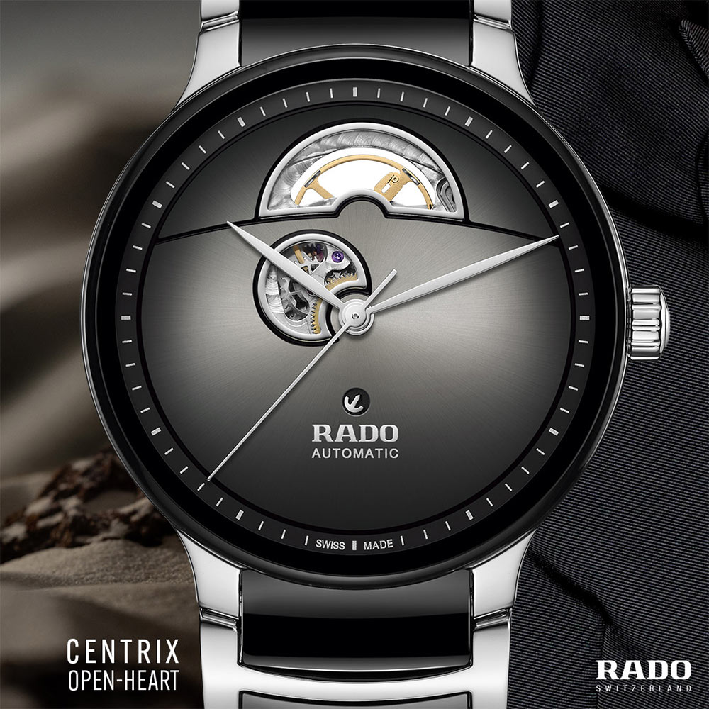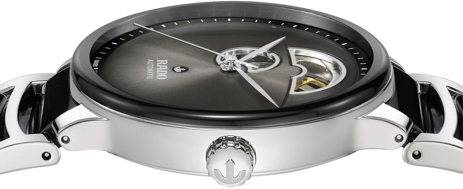 Z přední strany kryje číselník safírové sklíčko vysoce odolné proti poškrábání s antireflexní vrstvou na obou stranách, která zvyšuje čitelnost. Štít je projevem vynikající práce konstruktérů Rado. Jemné ručičky jsou instalovány na krásném přechodovém ciferníku se stříbrnou barvou přecházející do hluboké černé. Na vnější straně se objevily jemné lineární indexy. Nepopsatelným doplňkem je otevřené vyvážení, které vám umožní obdivovat tep těchto jedinečných pánských hodinek Rado. Majitel těchto luxusních hodinek Rado si může být jistý perfektním chodem mechanismu. Pod ciferníkem Open Heart se nachází automatický strojek Rado R734 s antimagnetickou vlásenkou Nivachron™. Mechanismus je chráněn proti magnetizaci, která škodí automatickým systémům, ale i proti vyšším teplotám. Inženýrské schopnosti švýcarské značky Rado nám umožnily vytvořit dokonalý mechanismus, který svého majitele nezklame.