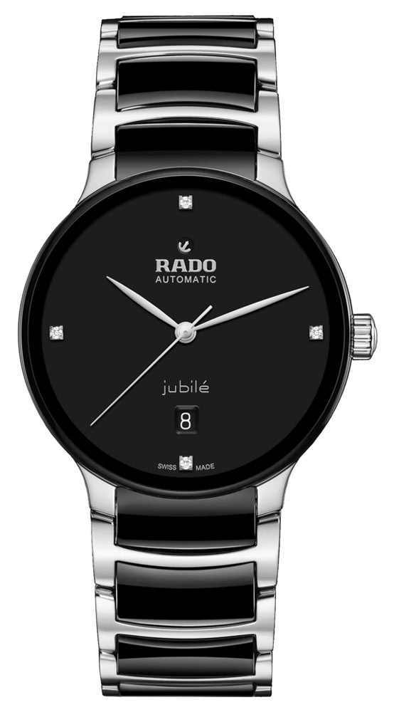 Elegantní hodinky Rado Centrix Diamonds R30018712 se 4 efektně třpytivými diamanty osazenými na černém ciferníku s datumem a podpisem výrobce. Díky použití vysoce odolného proti poškrábání a průhledného safírového skla je zobrazení diamantového času vždy dokonalé a hodinky samotné vypadají vždy jako nové.