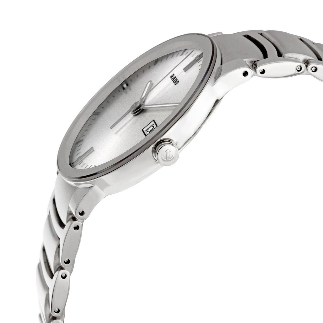 Pánské hodinky Rado Centrix R30927103 s podmanivým propracovaným tvarem. Elegantní pouzdro z leštěné nerezové oceli s hladkými liniemi. Na jeho horní straně je mírně klenuté safírové sklo odolné proti poškrábání. Minimalistický stříbrný ciferník s logem RADO a čirými ručičkami. O přesné měření času se stará bateriový Machineek quartz s funkcí data. Elegantní náramek s leštěnými a matnými prvky, perfektně pasuje k pouzdru.