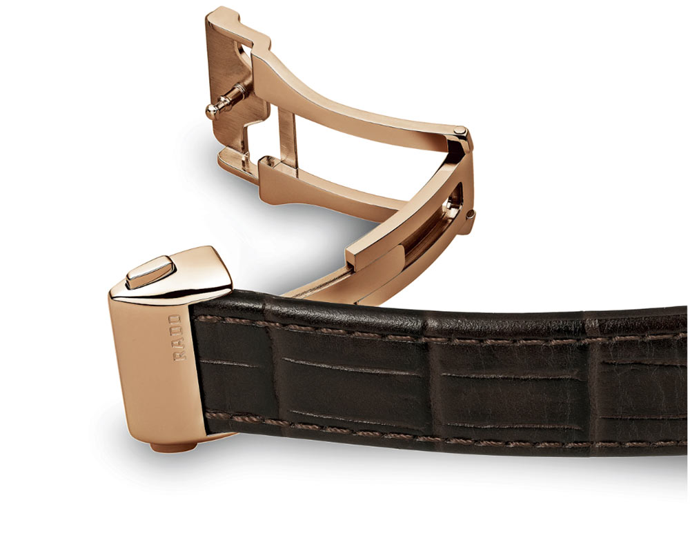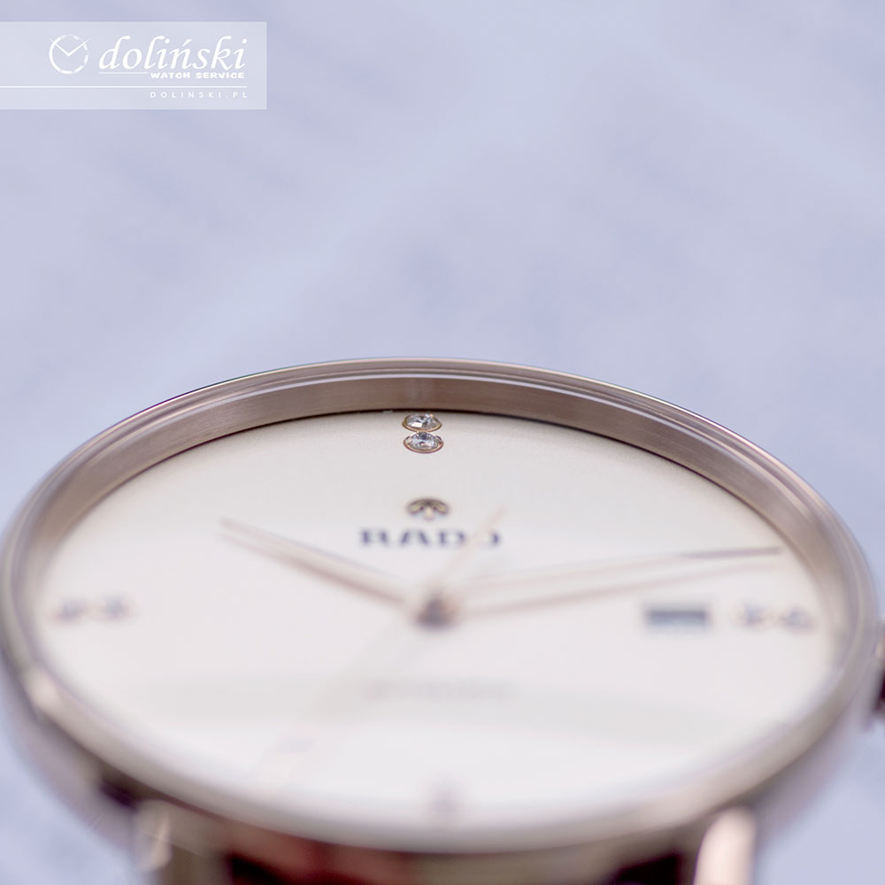 Exkluzivní hodinky Rado vybavené automatickým Machinekem, elegantním pouzdrem s vypouklým safírovým sklíčkem s antireflexní vrstvou. Na číselníku krásně kontrastují diamanty na ukazatelích hodin. Skvěle se hodí k formálnímu outfitu, ale skvěle doplní i každodenní šatník. Prvky náramku z keramiky z růžového zlata.