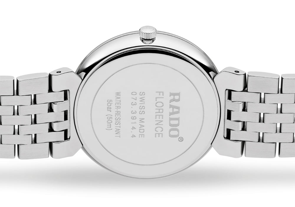 Diamantové hodinky Rado Florence Classic Diamonds R48912713 jsou krásným návratem do renesanční Florencie. Svěží pohled Rado na jeho klasickou florentskou kolekci, pojmenovanou po italském městě považovaném za kolébku éry renesance. Inspirací z té doby byla především krása antického (řeckého a římského) umění a architektury. Jak tyčící se věže, tak monumentální kopule nacházejí své poselství v elegantních liniích a vyvážených proporcích klasických hodinek Rado R48912713 z nerezové oceli.