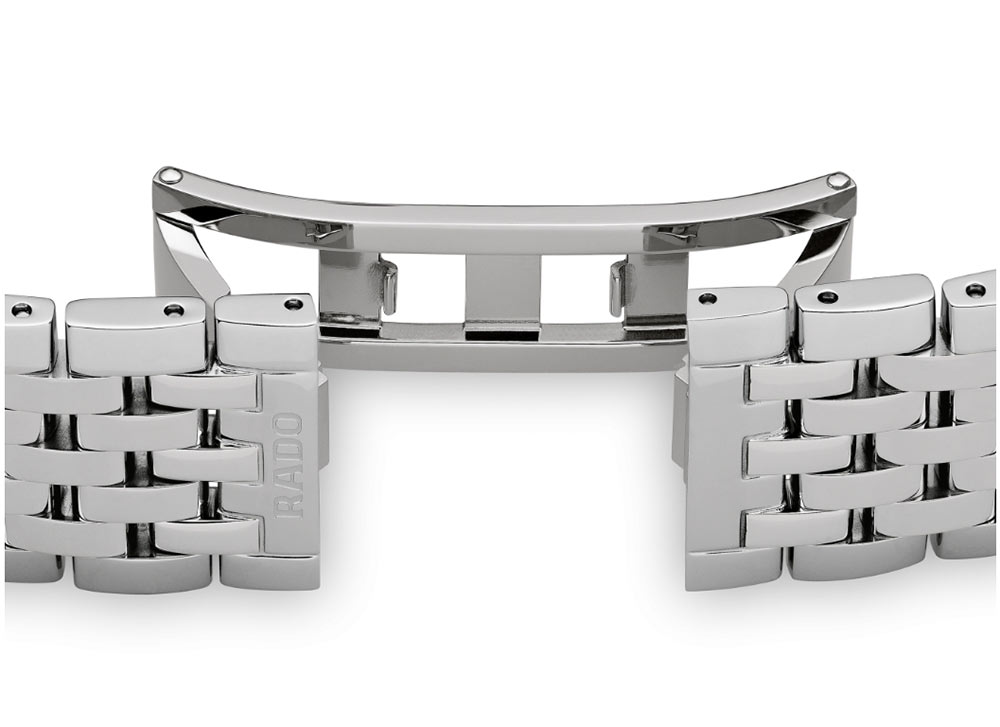 Tento nově interpretovaný 38milimetrový model se navíc vyznačuje štíhlým profilem a pasovým náramkem složeným ze sedmi řad. Nabízí vysokou flexibilitu a vysoký komfort nošení díky inovativnímu designu uší a vícesložkové konstrukci. Hodinky vám také umožní najít řadu nových designových prvků, které potěší i vytříbeným stylem provedení. Černý lakovaný ciferník s metalickým efektem dokonale ladí s leštěnou ocelovou lunetou se zkosenými černými metalizovanými hranami, které jsou shora skryty mírně vypouklým safírovým sklíčkem. Indikace pokovené rhodiem se pohybují mezi indexy 3/6/9/12 a čtyřmi broušenými diamanty. Jejich kvalitu a lesk zdůrazňuje a ctí opakující se slavné logo Jubilé na číselníku. Dříve se používaly k oddělení hodinek zdobených skutečnými prvotřídními diamanty od těch osazených syntetickými kameny. Dnes je toto stříbrné tištěné logo elegantním znamením pokračující afinity značky k prémiovým materiálům a designu. Hodinky jsou vybaveny quartzovým Machinekem Rado R073 s technologiemi PreciDrive a HeavyDrive, které zaručují vyšší přesnost a odolnost proti nárazům.