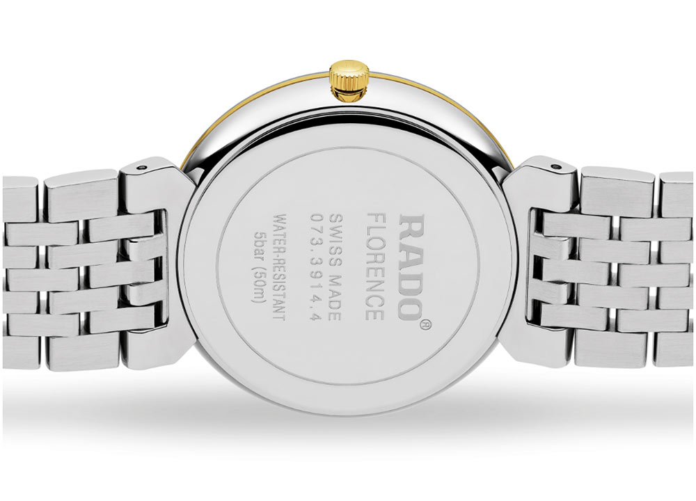 Hodinky Rado Florence Classic R48912153 jsou krásným návratem do renesanční Florencie. Svěží pohled Rado na jeho klasickou florentskou kolekci, pojmenovanou po italském městě považovaném za kolébku éry renesance. Inspirací z té doby byla především krása antického (řeckého a římského) umění a architektury. Jak tyčící se věže, tak monumentální kopule nacházejí své poselství v elegantních liniích a vyvážených proporcích pozlacených klasických hodinek Rado R48912153 z nerezové oceli.