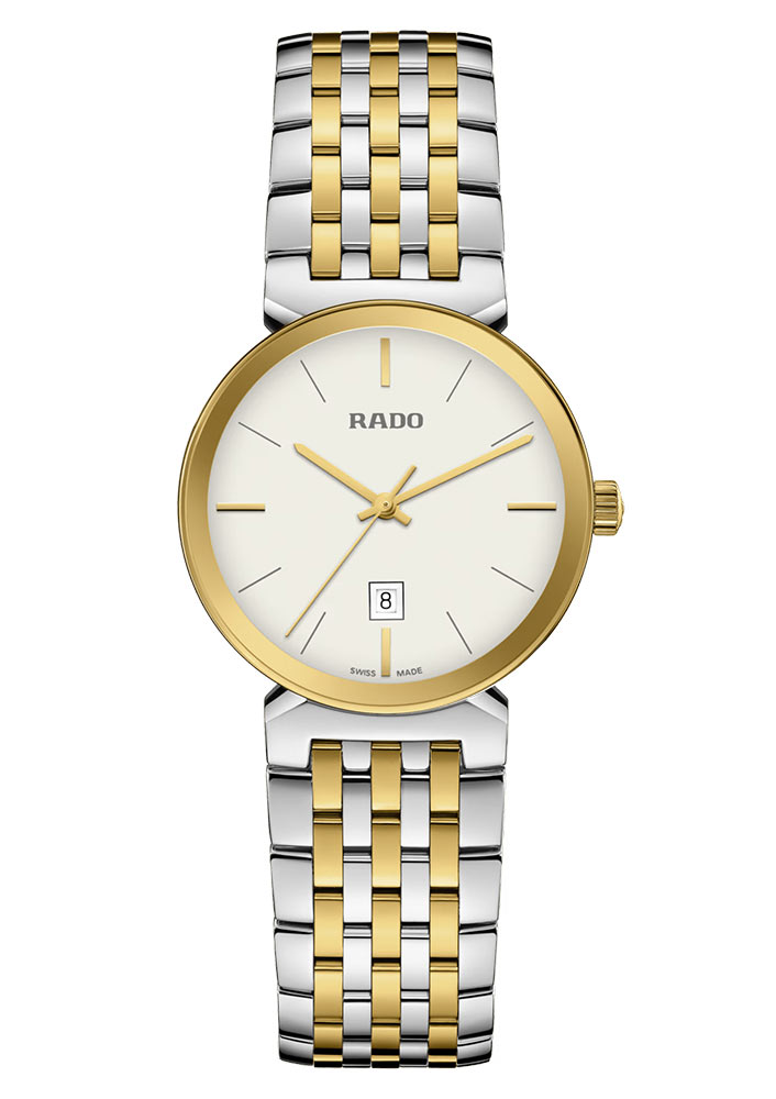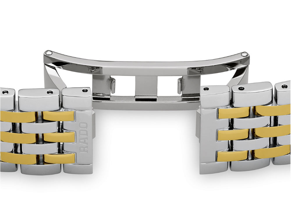 Tento reinterpretovaný 30milimetrový model se navíc vyznačuje štíhlým profilem a pasovým náramkem složeným ze sedmi řad, včetně těch potažených žlutým zlatem. Nabízí vysokou flexibilitu a vysoký komfort nošení díky inovativnímu designu uší a vícesložkové konstrukci. Hodinky vám také umožní najít řadu nových designových prvků, které potěší i vytříbeným stylem provedení. Světlý ciferník s metalickým efektem dokonale ladí s leštěnou, pozlacenou lunetou se zkosenými a pozlacenými hranami, které jsou z vrchní strany skryty pod mírně vypouklým safírovým sklíčkem. Hodinky jsou vybaveny quartzovým Machinekem Rado R079 s technologiemi PreciDrive a HeavyDrive pro vyšší přesnost a odolnost proti nárazům.
