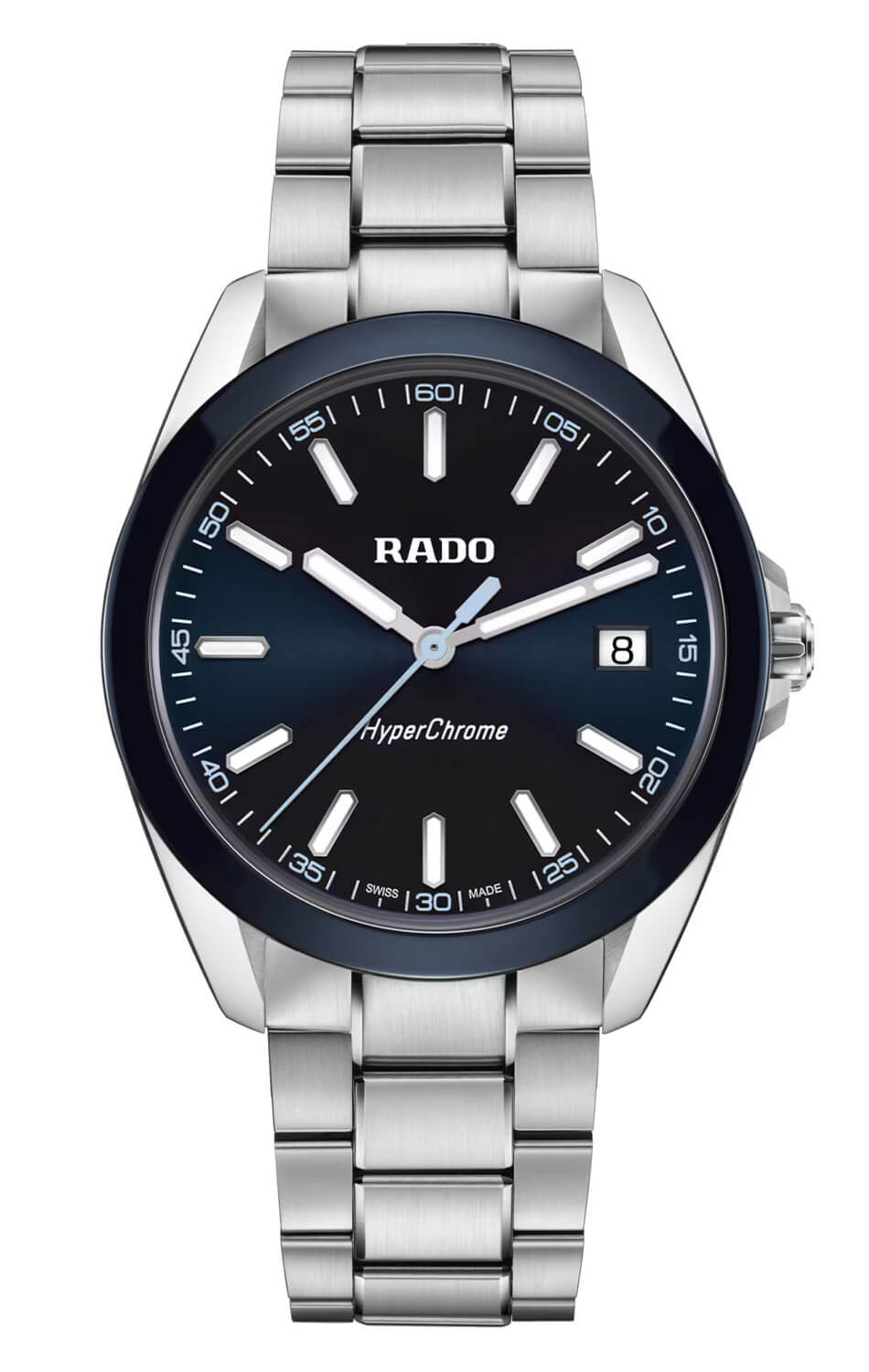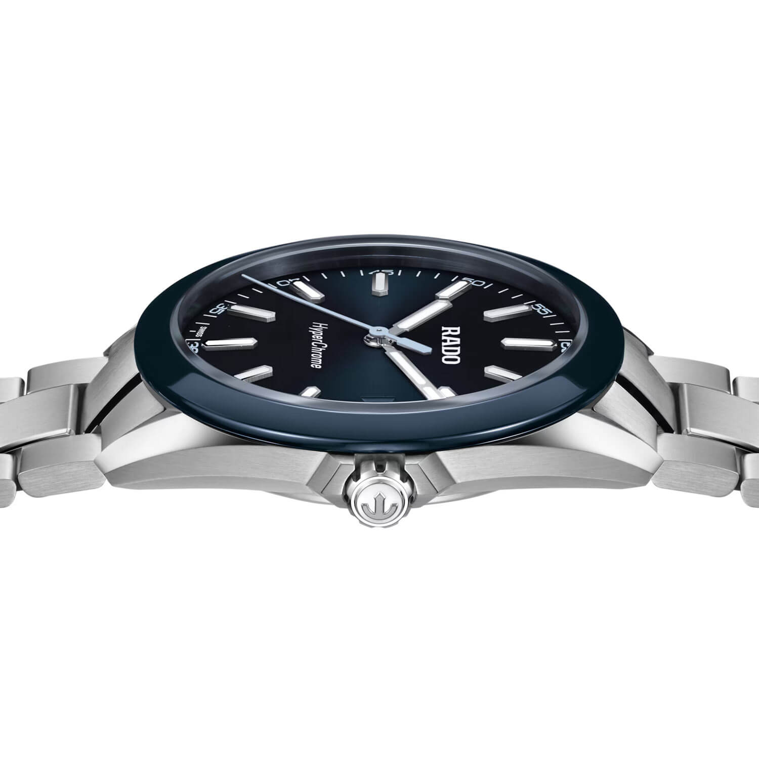 Modrý ciferník s gradientním efektem je doplněn kontrastními ručkami, které zajišťují výbornou čitelnost. Okénko s datem na třetí hodině a přesně nanesené indexy podtrhují funkčnost designu. Uvnitř se nachází švýcarský quartzový strojek Rado, který spojuje spolehlivost s bezúdržbovým provozem. Tento sportovní model si zachovává vytříbený styl, aniž by se vzdal praktických vlastností. Hodinky Rado HyperChrome R32280203 na náramku jsou moderním časoměřičem, který spojuje styl, odolnost a technologickou vyspělost v jednotné, ucelené podobě.