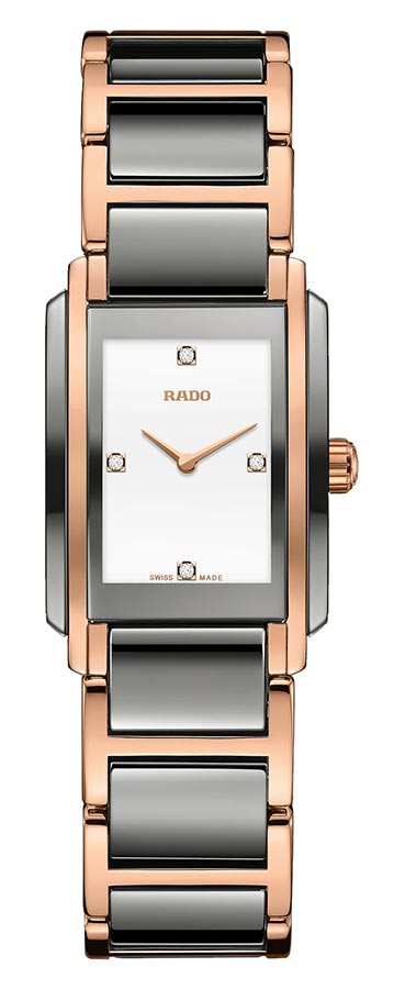 Dámské diamantové hodinky Rado Integral Diamonds Lady R20141712 jsou inspirovány modelem, který poprvé v hodinářství použil pokročilou keramiku. Tento model byl vytvořen společností RADO v roce 1986 a patřil do ikonické kolekce Integral. Současné hodinky si zachovávají průkopnického ducha tohoto odvětví a zároveň jsou upraveny tak, aby vyhovovaly potřebám dnešních zákazníků. Rado Integral Diamonds, po vzoru nadčasového modelu z konce 80. let, mu zůstává věrný z hlediska elegantního a jedinečného designu a také pokračuje v kurzu inovací, ke kterému Master of Materials směřuje od samého počátku své existence. Model zaujme grafickou linií, hladkými spoji paralelních linií, minimalistickou krásou a nejkvalitnějšími materiály, které jsou plodem sofistikovaných technologií.