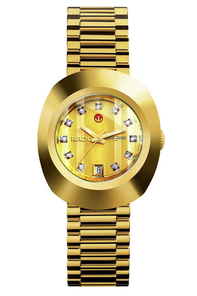 Neméně působivý a jedinečný je i ciferník hodinek Rado R12416633, který byl osázen drahými kameny. Jejich vytříbený design odráží první modely DiaStar, které jsou poctěny svým logem ve 3 hodiny.Jsou to dokonalé hodinky pro znalce osobitého stylu, vysoké hodnoty a luxusní kvality. Královský ciferník je chráněn safírovým sklem vysoce odolným proti poškrábání s antireflexní vrstvou. Oválné pozlacené pouzdro o průměru 27,3 mm a tloušťce 10,7 mm visí na třířadém náramku z nerezové oceli 316L zlaté barvy PVD s motýlkovou sponou. Celek pohání spolehlivý švýcarský automatický Machineek s funkcí prodlouženého data a rozsáhlou rezervou chodu až 38 hodin .