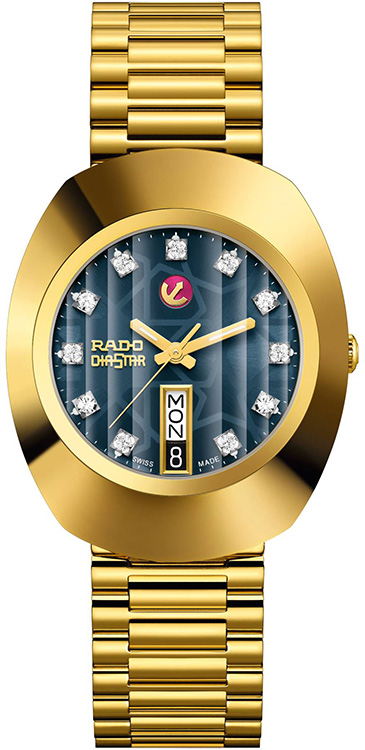 Hodinky Rado Original Automatic R12413523 jsou reinterpretací ikonického modelu Rado Original. Aktuální časomíra odkazuje na hodinky před lety nejen tvarem pouzdra, ale především stejným ciferníkem jako model DiaStar z roku 1962 . Original se vyznačuje klasickým designem Rado v kombinaci s nejnovějšími vysoce výkonnými materiály. Ikona z minulosti, přepracovaná pro dnešní muže, kteří chtějí vyniknout jedinečnými hodinkami. Před pěti desítkami let způsobil Rado revoluci v hodinářství se svými ikonickými hodinkami odolnými proti poškrábání. Dnes Rado Original spojuje odvážný a nadčasový design svého předka jako opravdová klasika, nesoucí nezaměnitelný podpis působivé konstrukce pevného pouzdra. Jeho design je veskrze moderní a má výrazný sportovní nádech. V roce 1962 představila společnost Rado ikonické hodinky Rado DiaStar 1 odolné proti poškrábání, tedy v době, kdy to zdaleka nebylo běžné. Tajemství tohoto tvora? tvrdý kov. Materiál Hardmetal použitý v těchto hodinkách je extrémně robustní - pevnější než ocel, zlato a platina, extrémně odolný proti poškrábání a schopný odolat úskalím každodenního života. Charakteristický tvar pouzdra má průměr 35 mm, jeho delší část má průměr 42,50 mm a tloušťka celé konstrukce je 11,90 mm. Zvláště pozoruhodný je ciferník zdobený zajímavým vzorem s lesklými 11 kamínky. Ciferník je modrý a dokonale ladí s celkem, který byl pozlacený žlutým zlatem metodou PVD.