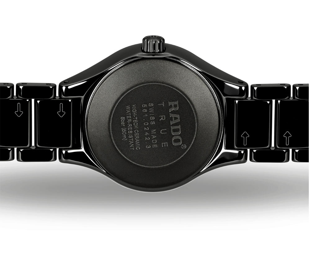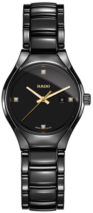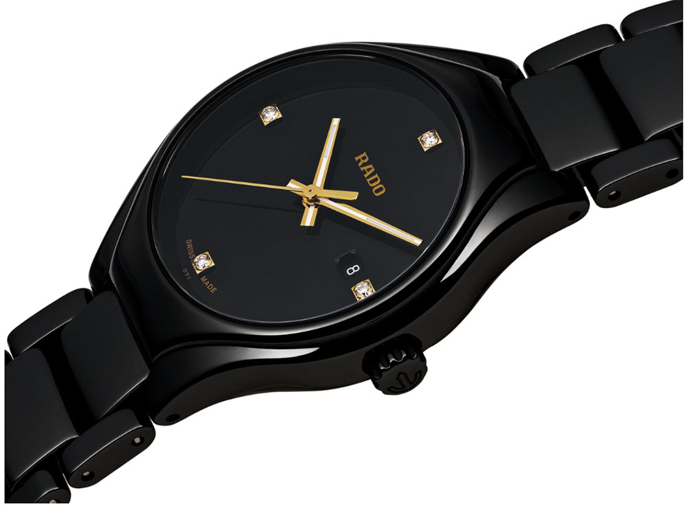 Rado True - dnešní pohled na hodinky s klasickým kulatým pouzdrem. Nové hodinky z kolekce Rado True Lady s moderním nádechem. Osm let po výrobě oceňované kolekce True jsou tyto mimořádné hodinky zpět s novým vzhledem. S poutavým pouzdrem a náramkem vyrobeným z černé keramiky High-Tech, titanovou sponou náramku a elegantním a přesto snadno čitelným ciferníkem je Rado True lehký, pohodlný na nošení a poutavý.