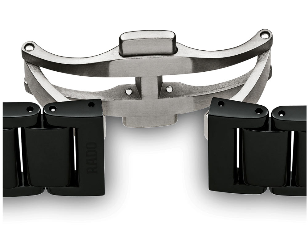 Materiál Rado: keramické materiály vysoké technologické kvality.Zatímco jiné značky využívají tradiční materiály jako zlato, mosaz nebo ocel, Rado sahá po inovativních materiálech budoucnosti, jako je karbid, safírové sklo, high-tech keramika, lanthan a high-tech diamant. Surovinou pro high-tech keramiku Rado je ultrajemný prášek oxidu zirkoničitého nebo karbidu titanu, který se lisuje ve formě a následně slinuje. High-tech keramické materiály získávají svůj charakteristický lesk leštěním diamantovým práškem.
