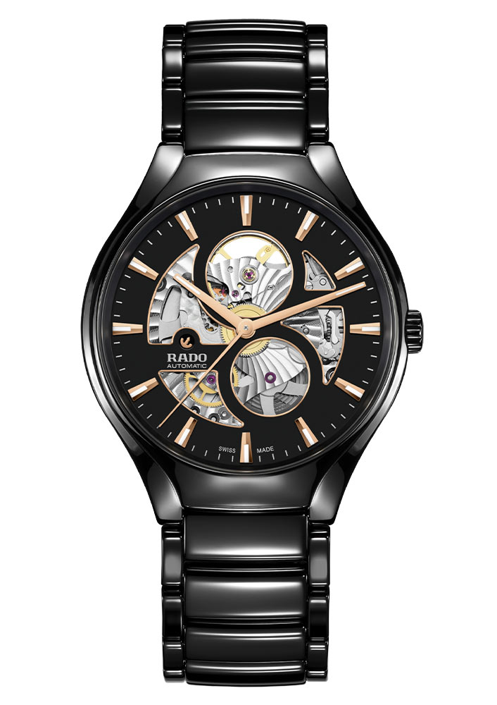Keramické hodinky Rado jsou nabízeny ve velikosti náramku 40 mm. Náramek je vyroben z leštěné černé high-tech keramiky a je vybaven titanovou sponou, která dodává těmto hodinkám jedinečný výraz. Použití keramiky zaručuje příjemný dotek a extrémně pohodlné používání hodinek za všech podmínek. Rado True Round Open Heart je symbolem neměnné moderny, nadčasové elegance a jedinečného stylu.