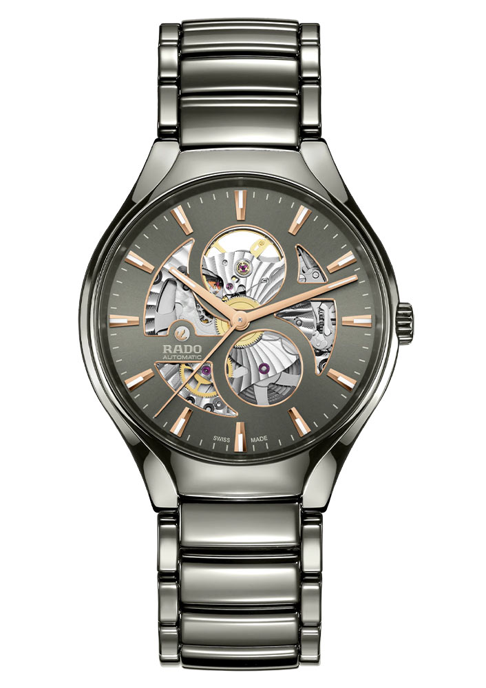 Keramické hodinky Rado jsou nabízeny ve velikosti náramku 40 mm. Náramek je vyroben z leštěné šedé high-tech keramiky a je vybaven titanovou sponou, která dodává těmto hodinkám jedinečný výraz. Použití keramiky zaručuje příjemný dotek a extrémně pohodlné používání hodinek za všech podmínek. Rado True Round Open Heart je symbolem neměnné moderny, nadčasové elegance a jedinečného stylu.