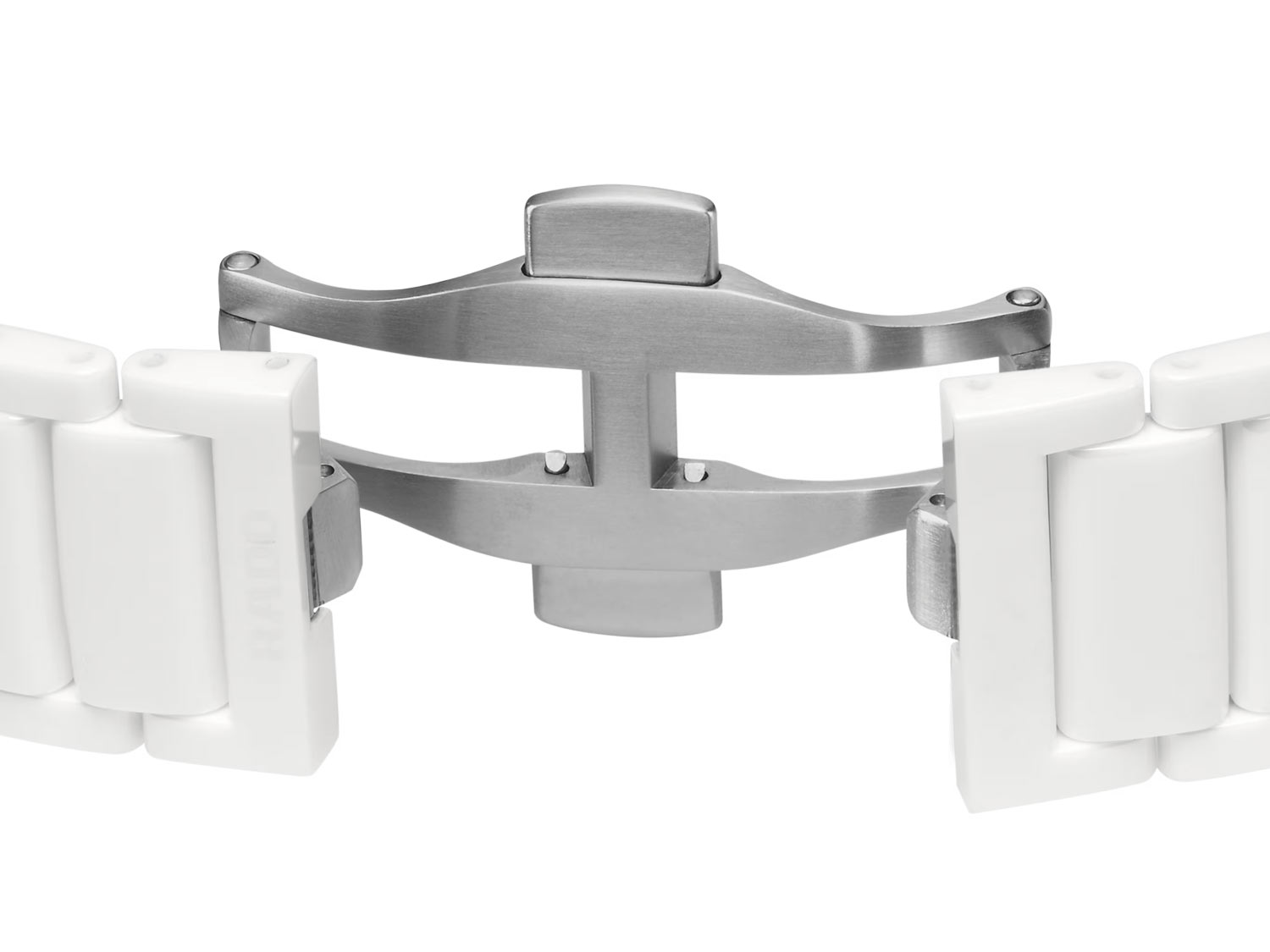 Keramické hodinky Rado jsou nabízeny ve velikosti náramku 40 mm. Náramek je vyroben z leštěné bílé high-tech keramiky a je vybaven titanovou sponou, která dodává těmto hodinkám jedinečný výraz. Použití keramiky zaručuje příjemný dotek a extrémně pohodlné používání hodinek za všech podmínek. Rado True Round Open Heart je symbolem neměnné moderny, nadčasové elegance a jedinečného stylu.