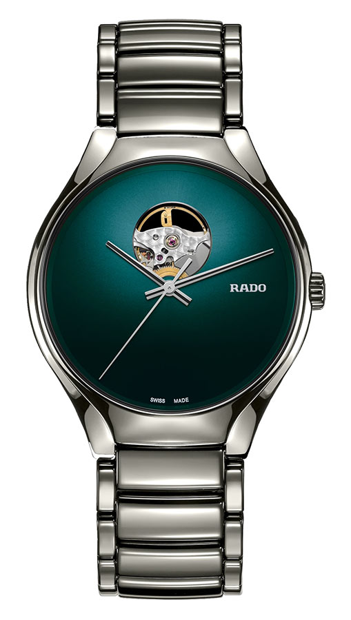 Rado True Secret Automatic zaujme čistým designem ciferníku s přechodovou úpravou v chladném tónu a otvorem s otevřeným srdcem, který odhaluje přesné tlukoucí srdce Machineku. Atraktivní gradient vytváří směs modré a zelené, barev, které spolu plynule splývají. Otevřená váha ve 12 hodin vás zve k objevování tajemství ukrytých uvnitř hodinek. V srdci švýcarského hodinářství. Navzdory lákavé pozvánce z ciferníku nesmí chybět pouzdro kolem. Na dotek příjemná a kovová záře high-tech plazmové keramiky, získané vlastní Rado, vyzařuje ze středu materiálu a zahaluje majitele tajemnou aurou chladu, stejně jako nepochopitelně magickým kouzlem. Inovativní materiál kromě vzhledu zaručuje dlouhodobou odolnost, lehkost a pohodlí s kvalitou, kterou lze zažít pouze u keramických hodinek RADO.
