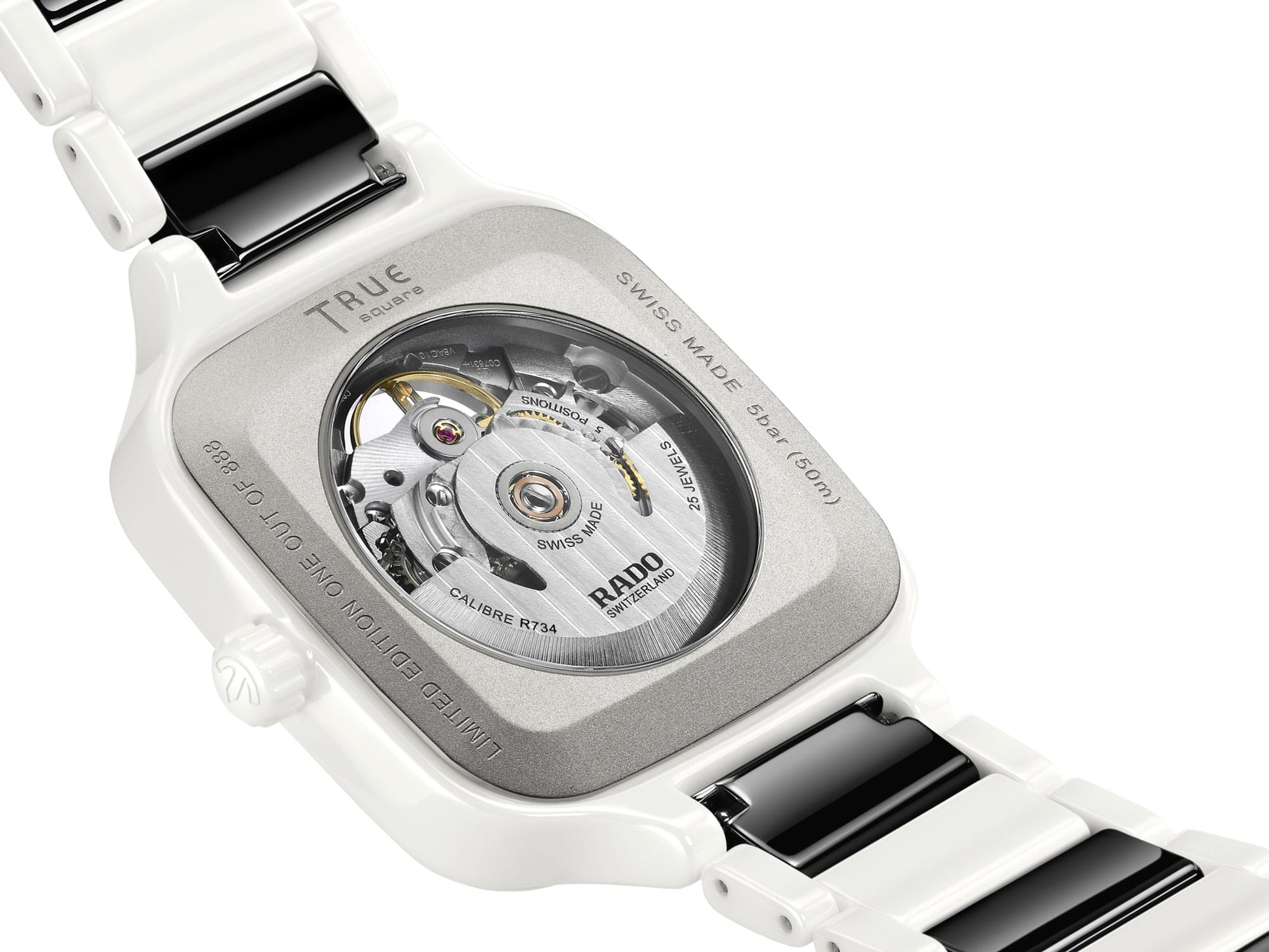 Limitované hodinky Rado True Square Skeleton nejsou pouze o odhaleném ciferníku a diamantech. Tento model pohání švýcarský mechanismus určený pro hodinky Rado. R734 je kalibr, který nabízí působivou rezervu chodu až 80 hodin. Rado Open Heart je skutečně luxusní doplněk, který se každý den bude vyjímat na jakémkoliv zápěstí. Bude skvělým dárkem pro blízkou osobu. Určitě se osvědčí při výjimečné večeři nebo obchodním setkání. Představené keramické hodinky Rado jsou k dispozici v limitované edici 888 kusů po celém světě.