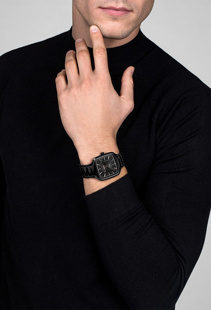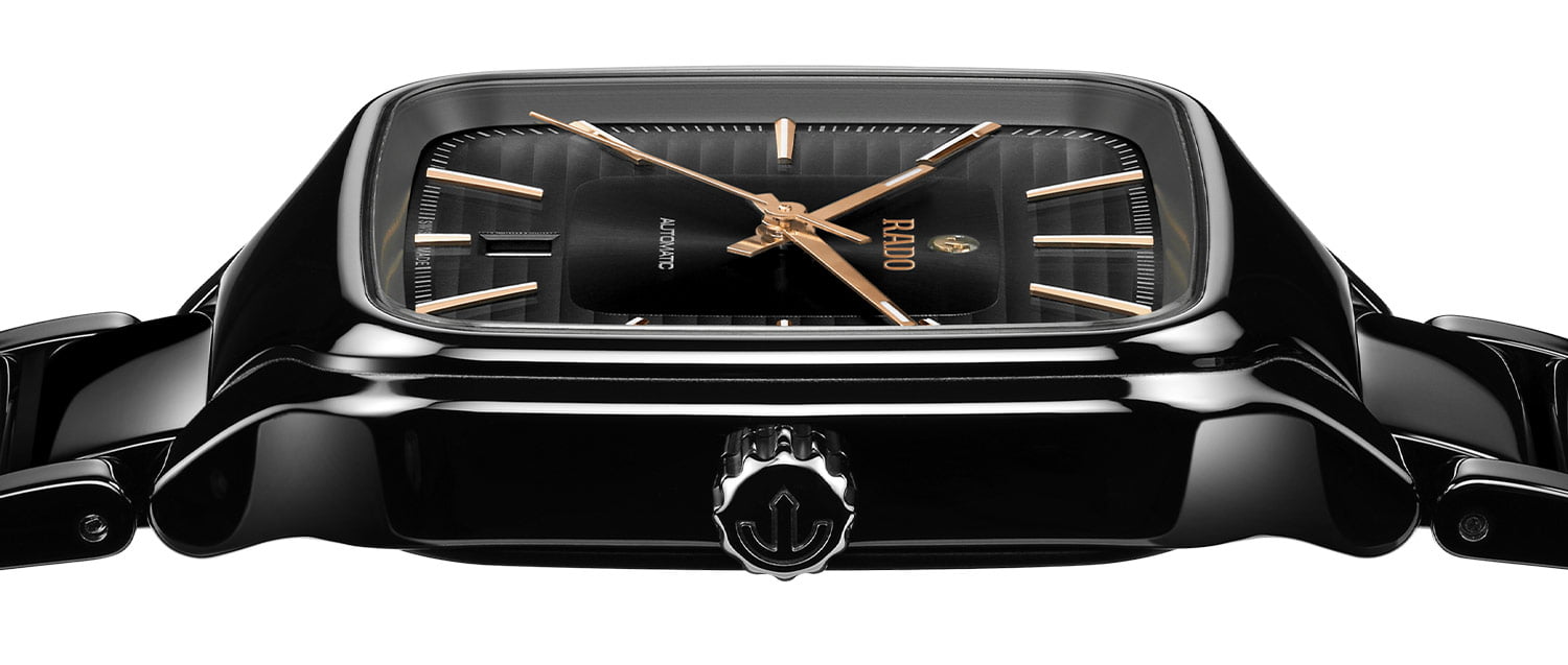 Hodinky Rado True Square Automatic R27078172 jsou čtvercové monoblokové pouzdro z černé high-tech keramiky v univerzální velikosti 38 mm. Výrobce Rado hodinky spároval s černým keramickým náramkem s titanovou motýlkovou sponou. Náramek je lehký, příjemný na dotek a poskytuje pohodlí při používání časovače.