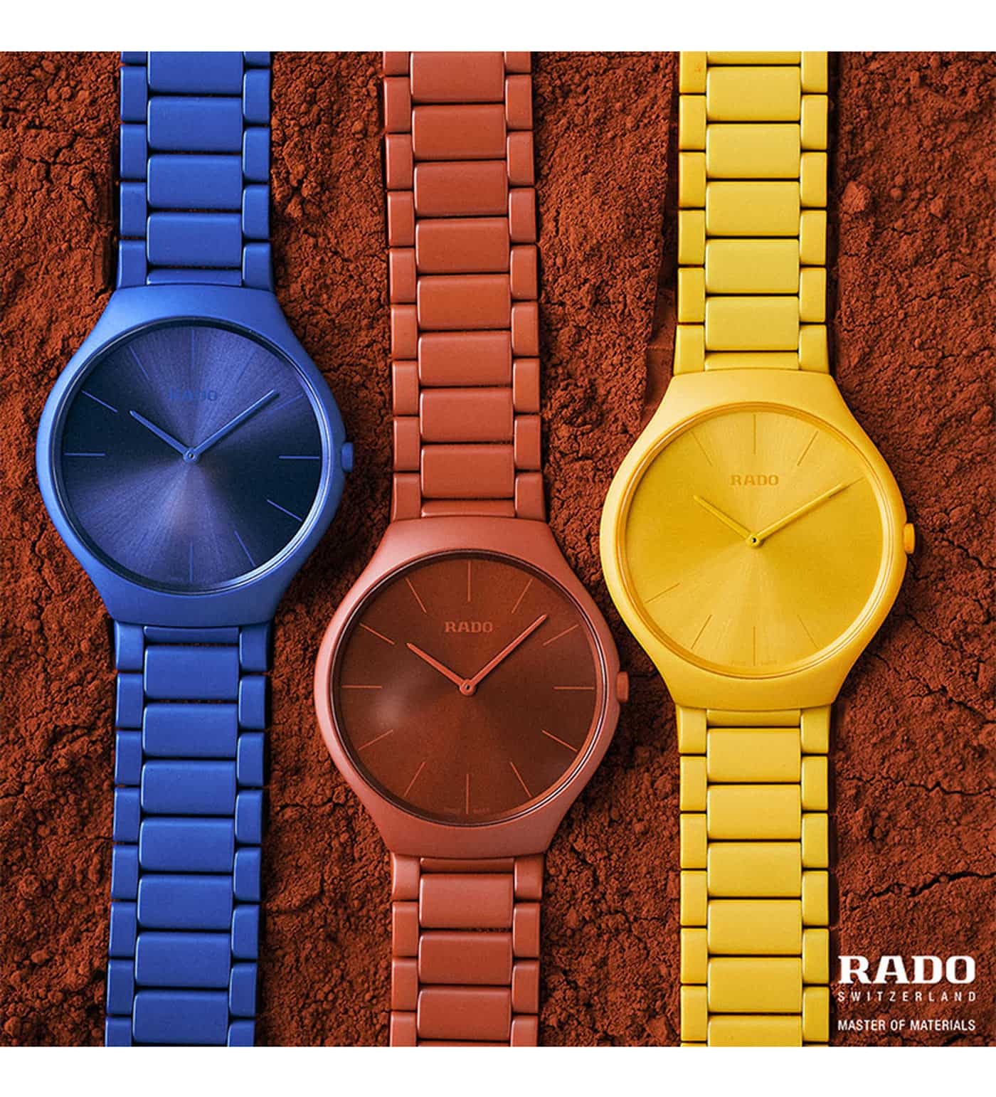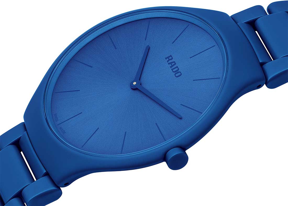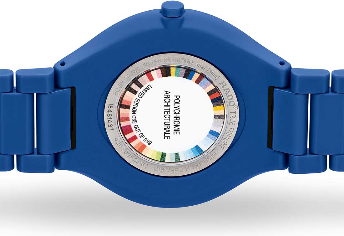 Živé, sametové, vyvážené, odvážné, silné, výrazné, jasné, působivé a čisté, hodinky True Thinline Les CouleursTM Le Corbusier jsou vyráběny v limitovaných edicích 999 kusů v každém odstínu. Zadní strana pouzdra je potištěna 63 barvami Le Corbusiera. Jako vždy u Rado je každý odolný, odolný proti poškrábání, lehký a pohodlný na nošení díky použití high-tech keramiky a průkopnickému monoblokovému designu. Rado je výhradním partnerem Les CouleursTM Le Corbusier v hodinářském průmyslu. Jako jediní jsou schopni vyrobit tak přesné barvy z výjimečné high-tech keramiky.