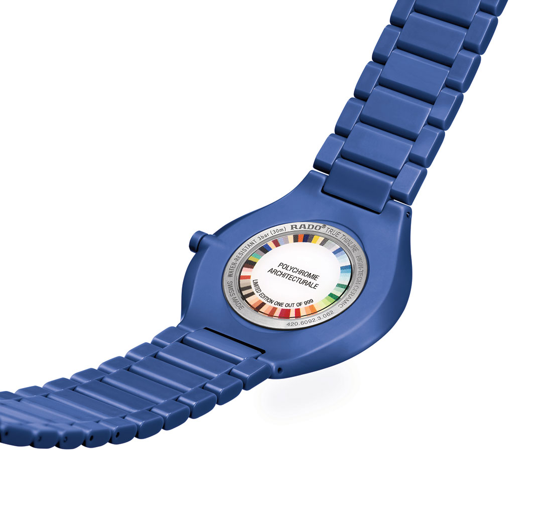 K vytvoření hodinek v devíti vybraných barvách z palety „Architectural Polychromy“ využil Rado všechny znalosti a zkušenosti získané za 30 let práce s keramikou. Jako Master of Materials věděli, že získat správné odstíny bude nesmírně obtížné. Barevné palety "Architectural Polychromy" z let 1931 a 1959 předběhly svou dobu. Jedná se o 63 barev s architektonickým významem, které pomáhají vytvářet prostor a hloubku a zároveň mají hluboký fyziologický a psychologický význam. Barvy jsou rozděleny do devíti skupin s různými odstíny a tóny. Palety jsou dodnes široce používány architekty a designéry po celém světě, což dokazuje jejich trvalou přitažlivost a nadčasovost, stejně jako jedinečný status Le Corbusiera jako skutečného vizionáře.