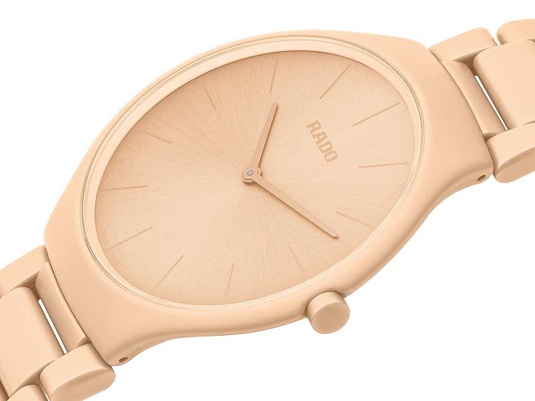Živé, sametové, vyvážené, odvážné, silné, výrazné, jasné, působivé a čisté, hodinky True Thinline Les CouleursTM Le Corbusier jsou vyráběny v limitovaných edicích 999 kusů v každém odstínu. Zadní strana pouzdra je potištěna 63 barvami Le Corbusiera. Jako vždy u Rado je každý odolný, odolný proti poškrábání, lehký a pohodlný na nošení díky použití high-tech keramiky a průkopnickému monoblokovému designu. Rado je výhradním partnerem Les CouleursTM Le Corbusier v hodinářském průmyslu. Jako jediní jsou schopni vyrobit tak přesné barvy z výjimečné high-tech keramiky.