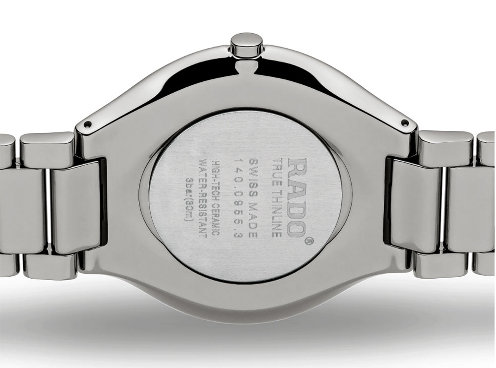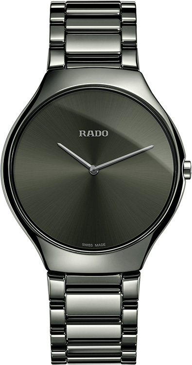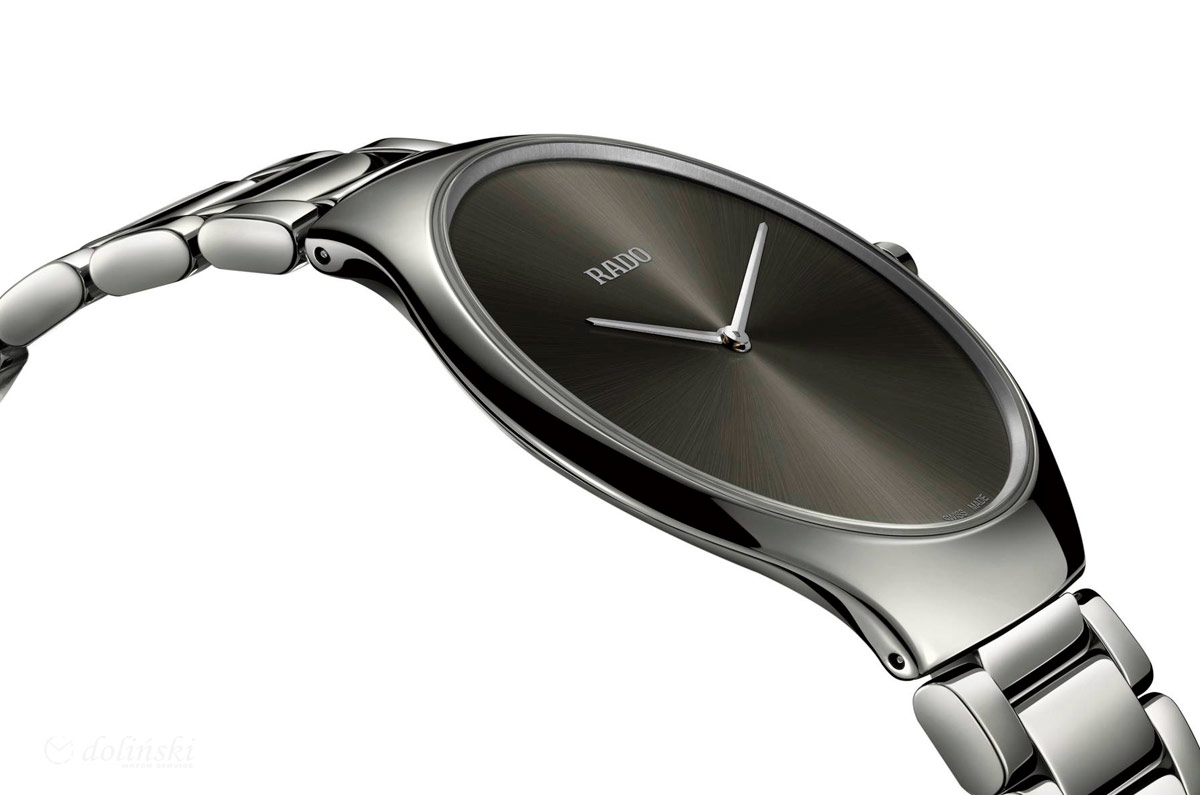 Nejtenčí hodinky na světě vyrobené z high-tech keramiky. Tloušťka pouzdra je pouhých 5 milimetrů. Rado True Thinline nastavuje nové standardy pro lehkost a pohodlí a stávají se nejtenčími keramickými hodinkami na světě. Švýcarští průkopníci moderního hodinářství, známí používáním neobvyklých, high-tech materiálů k vytvoření tohoto technologického díla hraničícího s uměním, překonali mnohé hranice. Rado True Thinline L Quartz kombinuje vlastnosti vynikající odolnosti a nebývalého komfortu používání.