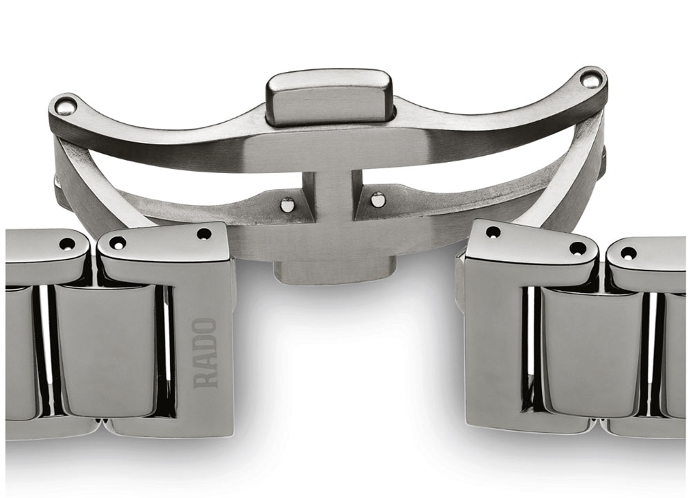 Plazmová high-tech keramikaPlasma High-Tech Ceramic poskytuje nápadný a tajemný kovový lesk, platinové barvy, bez použití jakéhokoli kovu. Proces plazmového nauhličování je patentován výhradně Rado a je formou moderní alchymie. Plyny aktivované při 20 000 °C mění složení keramiky High-Tech bez ovlivnění jejích základních vlastností. Přestože se na platinovou změní pouze barva keramického povrchu, neztrácí svou barvu, zachovává si svůj Originní lesk a je odolný proti poškrábání po mnoho let.