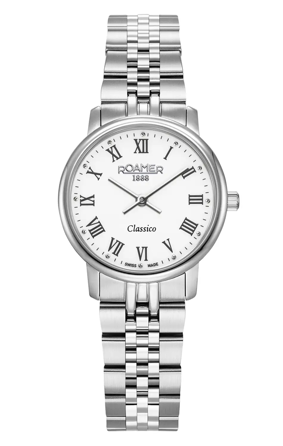 Dámské hodinky Roamer Classico Ladies 971857 41 25 50 – elegance, která nepotřebuje pozornost. Tyto hodinky vznikly s myšlenkou na ženy, které svou sílu vyjadřují jemností. Štíhlá forma, bílý ciferník a jeho římské indexy připomínají ducha tradičního hodinářství, avšak v podobě přizpůsobené tempu současného života – uspořádaného, vědomého a krásného ve své jednoduchosti. Pouzdro v dámské velikosti 30 mm je doplněno o ocelový náramek, který zaručí pohodlné a bezpečné používání.
