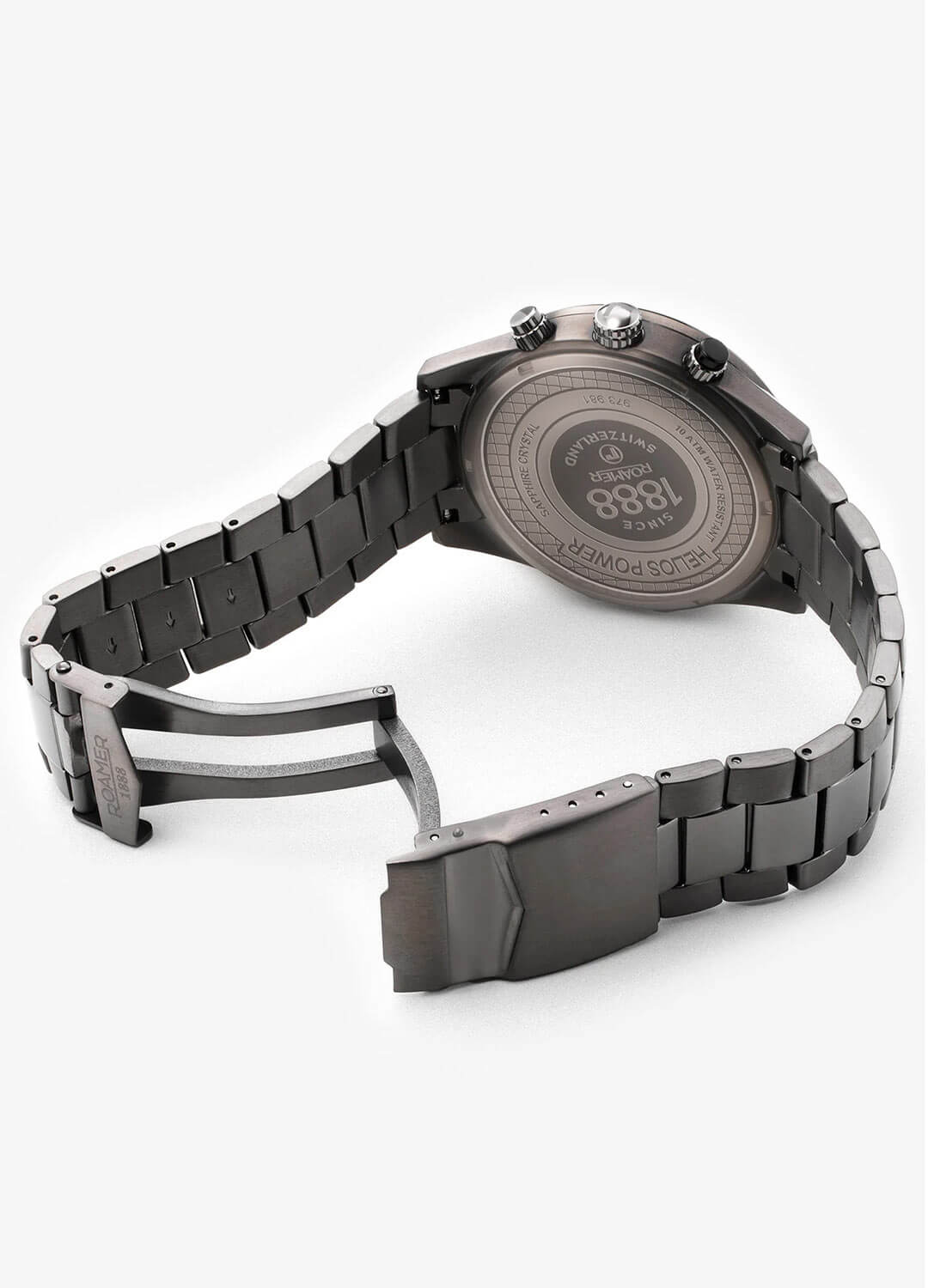 Pánské hodinky Roamer Helios Power 973981 44 15 20 jsou moderním chronografem, který spojuje švýcarskou preciznost s výrazným designem a technologickými inovacemi. Pouzdro o průměru 43 mm vyrobené z odolného titanu s úpravou ion-plated zajišťuje vysokou odolnost proti mechanickému poškození i korozi. Pevný titanový náramek dokonale ladí s elegantní formou hodinek a vytváří harmonický celek se sportovním, a přitom luxusním charakterem. Vodotěsnost do 100 metrů umožňuje bezpečné používání hodinek při plavání i jiných vodních aktivitách.