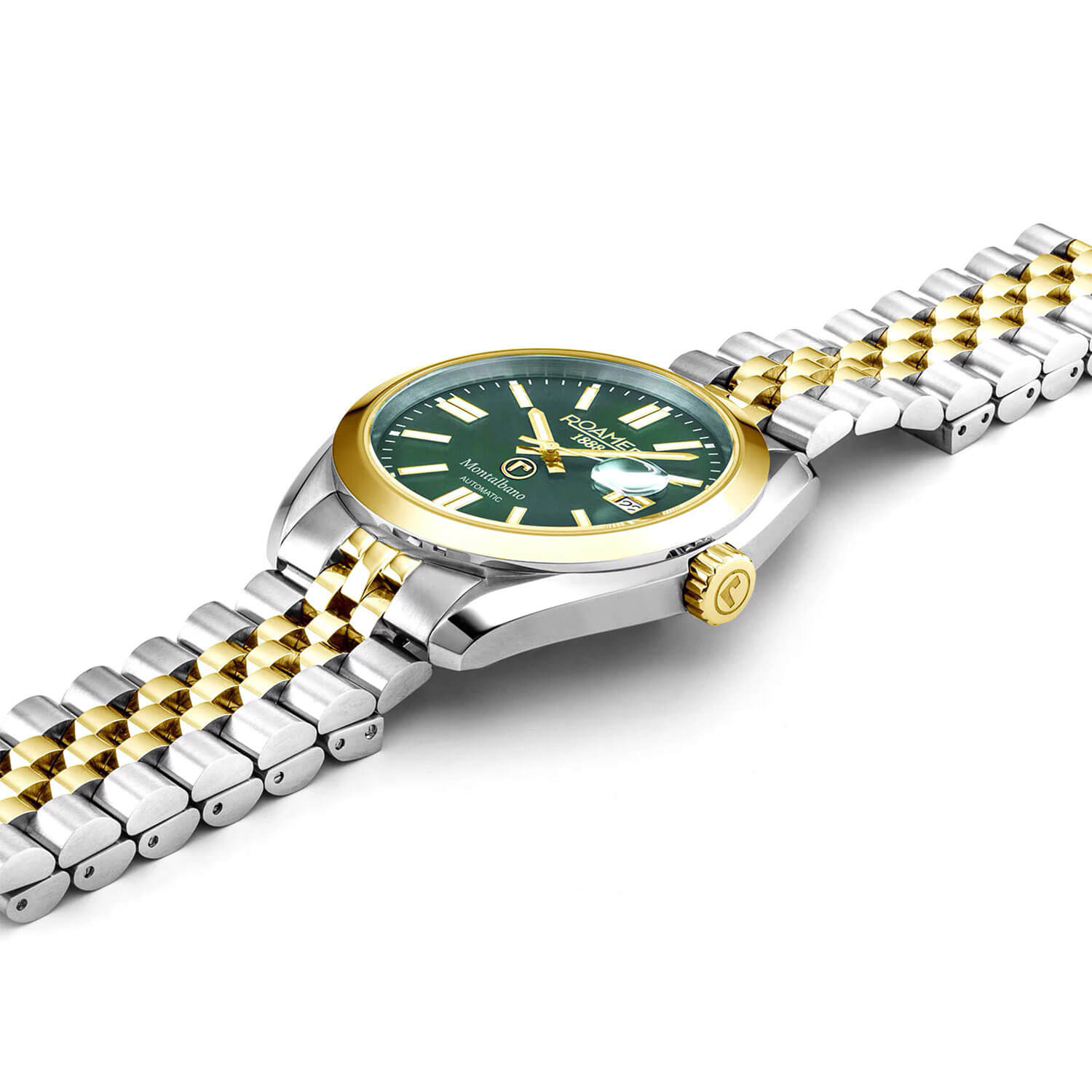 Švýcarské hodinky Roamer Automatic 996983477520 bicolor kombinují eleganci a funkčnost, a byly navrženy s ohledem na náročné muže. Stříbrné pouzdro o průměru 40.50 mm s pozlacenou lunetou působí stylově a zároveň zachovává ideální velikost pro pánské zápěstí. Díky vodotěsnosti až do 100 metrů jsou hodinky vhodné pro každodenní činnosti i kontakt s vodou, a poskytují tak spolehlivost v každé situaci. Pouzdro je chráněno odolným safírovým sklem, které zajišťuje dlouhodobou ochranu ciferníku a umožňuje zachovat jeho bezchybný vzhled po mnoho let. Hodinky doplňuje prestižní náramek typu Jubilee z vysoce kvalitní nerezové oceli, který je na vnitřních článcích pokryt iontovou vrstvou IP ve zlatém odstínu. Tento náramek poskytuje nejen elegantní vzhled, ale také vysoký komfort při nošení, což činí z těchto hodinek ideálního společníka pro každodenní i slavnostní příležitosti.