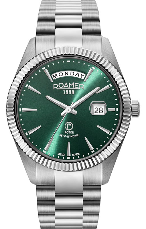Barvy prezentované časomíry jsou uzavřeny ve dvou odstínech – zelené s nádechem sunburst a sametově lesklé stříbrné. Stříbrné, byly prezentovány ve dvou variantách: lesklá, leštěná a sametová, kartáčovaná, díky čemuž jsou hodinky velmi atraktivní a živé. Pouzdro je vyrobeno z nerezové oceli 316L , která se vyznačuje vysokou odolností proti korozi, zašednutí a poškrábání. Další komponentou, která se vyznačuje ještě vyšší, téměř úplnou odolností proti poškrábání, je safírové sklíčko, které kryje číselník. Hodinky Roamer Primeline Daydate 981662 41 75 90 pohání přesný samonatahovací automatický strojek s kalibrem STP4-13. Jednou z jeho největších výhod je pohodlná absence nutnosti výměny baterie.