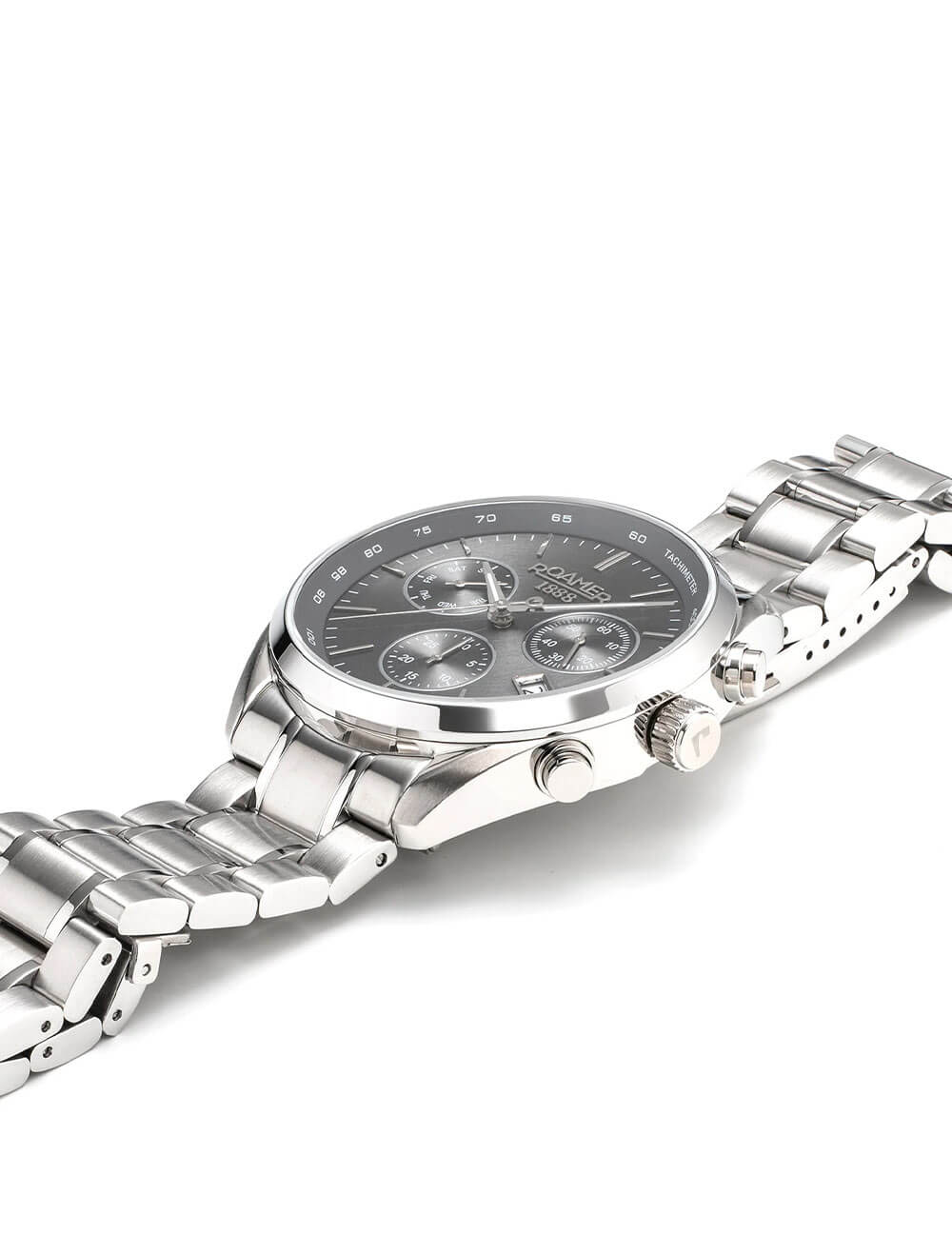 Pevné pouzdro z nerezové oceli o průměru 43,50 mm je kombinováno s perfektně padnoucím náramkem, který zajistí pohodlné a elegantní uchycení na zápěstí každého muže. Zadní strana hodinek je vybavena odolným šroubovacím krytem, který nejen zdůrazňuje pevnost konstrukce, ale také zaručuje třídu vodotěsnosti do 100 metrů. Díky tomu je tento model nejen stylový, ale také spolehlivý v náročných podmínkách, ideální jak pro každodenní použití, tak pro sportovní aktivity.