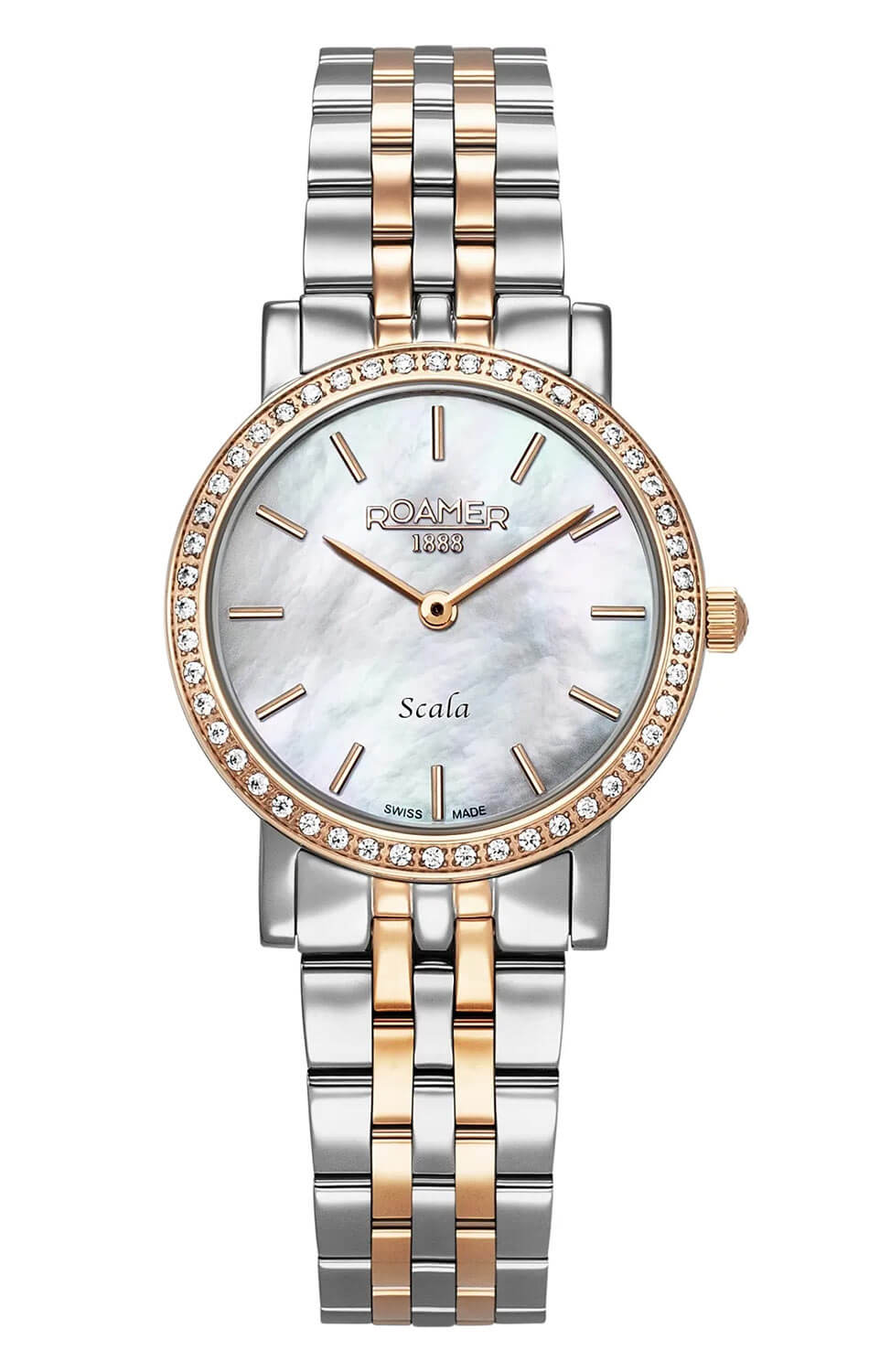 Hodinky Roamer Scala 976830492050 s perletí jsou určeny pro dámy, které hledají rovnováhu mezi jemným luxusem a funkčností. Pro ženy, které nechtějí volit mezi krásou a kvalitou. Jsou to hodinky, které nekřičí – mluví šeptem, ale s elegancí. Ve stylu, který nikdy nevyjde z módy, a s poselstvím, které ocení každá žena milující autentické řemeslo, švýcarskou kvalitu a detaily s nadčasovým významem.