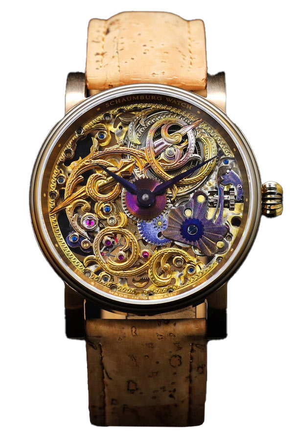 Jedním z nejpůsobivějších prvků tohoto modelu je číselník. Díky safírovému sklu je možné obdivovat kompletně ručně skeletonizovaný mechanický ruční strojek SW-07.1 (základ UNITAS 6498), který tvoří srdce hodinek. Plně viditelný strojek je vybaven vyvažovaným setrvačníkem se šroubky a Breguetovou spirálou. Detaily byly ručně patinovány a tepelně barveny, což jim dodává autentický a jedinečný vzhled. Každý prvek číselníku ukazuje mistrovství hodináře a okouzlí jak znalce, tak i ty, kteří se s tak precizním dílem setkávají poprvé. Barevná a tvarová kompozice na číselníku vytváří mimořádný dojem, kde každý prvek vypráví vlastní příběh. Schaumburg Unikatorium SCH-ASAFO jsou hodinky, které spojují tradici, řemeslné umění a uměleckou vizi, nabízejí víc než jen přesné měření času – skutečný zážitek.