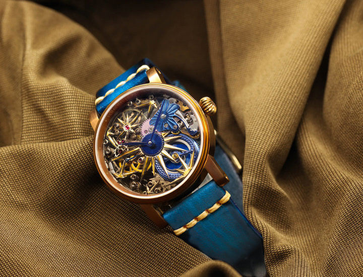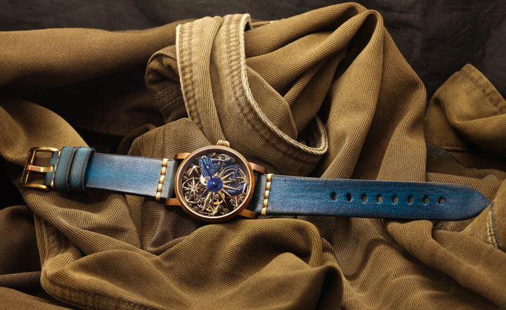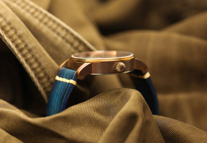 Materiály použité k výrobě Schaumburg Vintage Hand Made jsou stejně jedinečné jako samotný příběh hodinek. Pouzdro je vyrobeno z vysoce kvalitní nerezové oceli, která byla ručně patinována a tepelně barvena. Díky tomuto procesu získává každé pouzdro individuální vzhled, který se neopakuje u žádného jiného kusu. Zlatá barva pouzdra, dosažená přirozenými metodami, přitahuje pozornost a dodává hodinkám výjimečný charakter. Dalším prvkem, který tento model odlišuje, je modrý kožený řemínek ve vintage stylu. Je lehký a pohodlný na nošení, což činí Schaumburg ideální volbou pro ty, kteří dbají na svůj komfort. Řemínek je zakončen patinovanou a tepelně barvenou sponou, která dokonale ladí s pouzdrem a zdůrazňuje soudržnost designu.