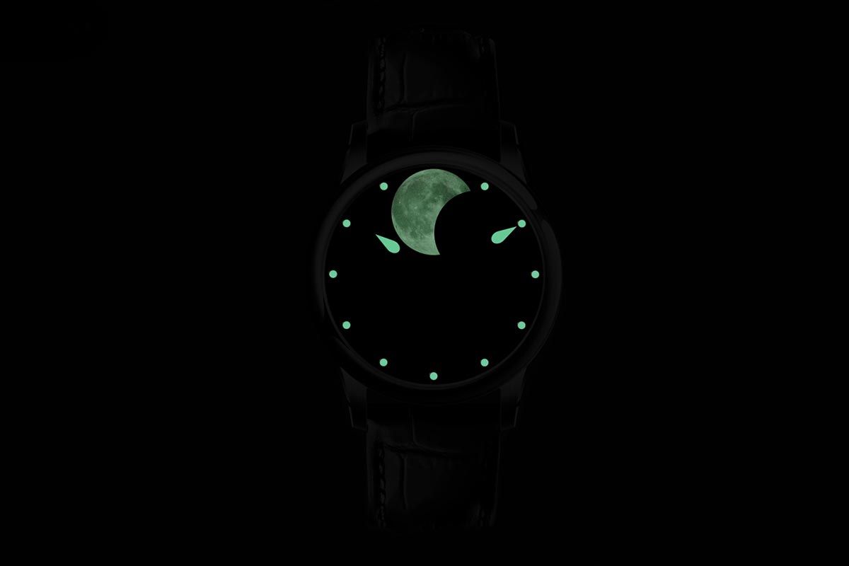 Blood MooN Galaxy, jak už název napovídá, představuje také neobvyklý obraz vesmíru, který jakoby plní roli dokonalého pozadí pro funkci časovače. Pozoruhodný je také lesknoucí se zlatý oblouk podepsaný „Ekliptic“, odkazující na zdánlivou cestu Slunce v průběhu roku. Navíc překvapí neobvyklý tvar sekundové ručičky, jejíž podoba je zvlněná a zakončená hvězdou. Časové měřítko je tvořeno luminiscenčními kruhy, nad kterými je obsaženo 31 dní v měsíci. Výše zmíněný Měsíc je dobře exponovaný díky značné velikosti, podsvícení a umístění přímo u horního okraje ciferníku. Celek je pokryt křišťálově čistým a téměř nepoškrábaným safírovým sklem obohaceným o antireflexní vrstvu. Pouzdro 43 mm je vyrobeno z broušené nerezové oceli, která zaručuje vysokou odolnost proti poškrábání a korozi. Dokonale chrání upravený, spolehlivý a vysoce přesný automatický Machineek vycházející ze švýcarského Machineku SW-11, jehož práci a dekoraci Côtes de Genève na rotoru lze obdivovat přes průhledné zadní pouzdro.
