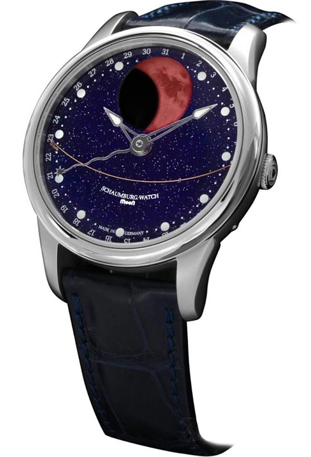 Hodinky Schaumburg SCH-MNGB navrhl majitel společnosti a ručně je vyrobili němečtí specialisté v malé továrně v Rintelnu. Tato skutečnost odráží jistotu pozornosti ke každému detailu a vložení srdce do jediné kopie. Modely z kolekce MooN jsou vytvořeny ve vizi vysokého realismu postavy Měsíce, která je zároveň funkcí věčného indikátoru lunární fáze a originální atrakcí. Druhou částí vize je vypracovat co nejvyšší přesnost této komplikace. Díky nasazení, vášni a dlouholetým zkušenostem hodinářů vyrábějících hodinky Schaumburg zajišťuje originál upravený „Blood Moon“ téměř absolutní přesnost chronometru. Teprve po 122,5 letech se lunární cyklus odchýlí od skutečného o jeden den. Jedinečnost a luxus tohoto modelu je tedy založen na jeho jedinečném vzhledu a také na vyspělé technologii, kterou značka využívá pro potřeby své maloobchodní značky.