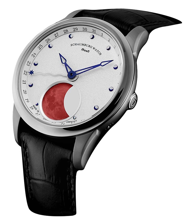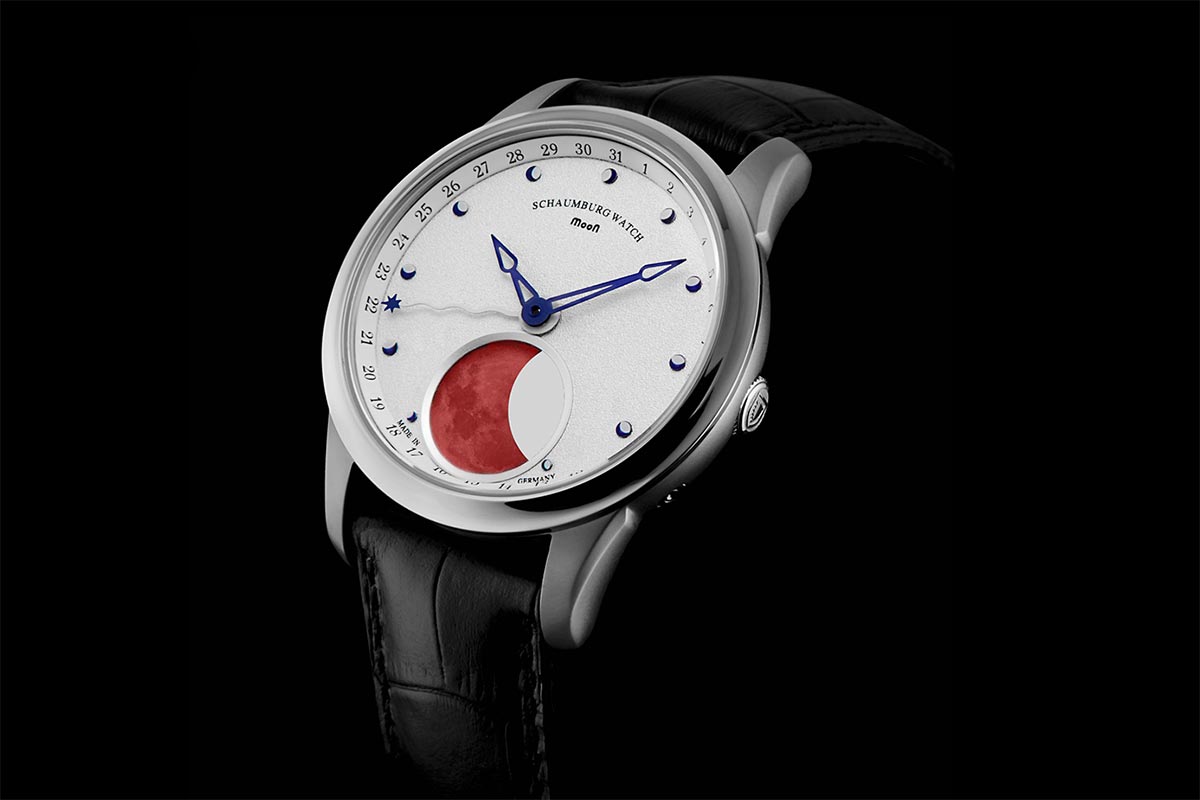 Hodinky Schaumburg SCH-MN1B byly navrženy majitelem společnosti a ručně vyrobeny německými specialisty v malé továrně v Rintelnu. Tato skutečnost odráží jistotu pozornosti ke každému detailu a vložení srdce do jediné kopie. Modely z kolekce MooN jsou vytvořeny ve vizi vysokého realismu postavy Měsíce, která je zároveň funkcí věčného indikátoru lunární fáze a originální atrakcí. Druhou částí vize je vypracovat co nejvyšší přesnost této komplikace. Díky nasazení, vášni a dlouholetým zkušenostem hodinářů vyrábějících hodinky Schaumburg zajišťuje originál upravený „Blood Moon“ téměř absolutní přesnost chronometru. Teprve po 122,5 letech se lunární cyklus odchýlí od skutečného o jeden den. Jedinečnost a luxus tohoto modelu je tedy založen na jeho jedinečném vzhledu a také na vyspělé technologii, kterou značka využívá pro potřeby své maloobchodní značky.