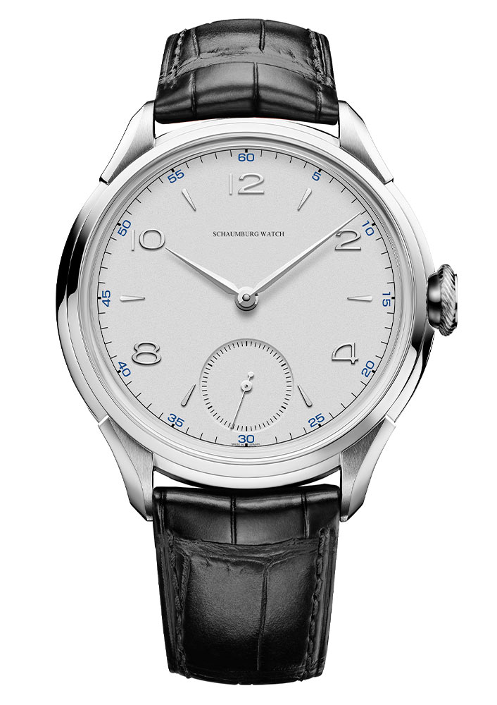 Elegantní hodinky Schaumburg Classic Purist na koženém pásku jsou luxusním doplňkem pro náročné muže. Práce na každém detailu je patrná už na první pohled na estetický ciferník tohoto modelu. Malá limitace činí tento časoměřič zajímavou nabídkou pro sběratele a fanoušky komplikovaného hodinářství, které lze nalézt v unikátní konstrukci manufakturního mechanismu.