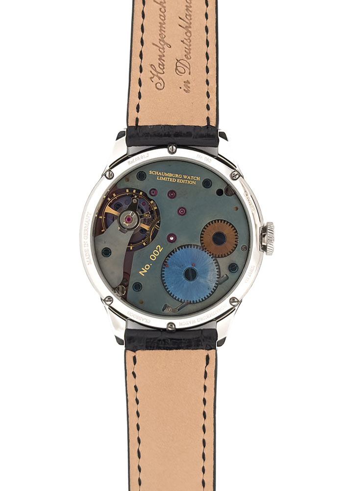 Limitované hodinky Schaumburg Classic Purist jsou výjimečně exkluzivním modelem určeným pro muže, který vzdává hold německému umění hodinářství. Limitovaný časoměřič Schaumburg Classic Purist Limited Edition SCH-CLPURS představuje kvintesenci elegance, ideálně ladící jak s oblekem, tak s klasickou košilí. Výjimečná edice omezená na pouhých 222 kusů po celém světě podtrhuje exkluzivitu tohoto modelu. Na zadní straně pouzdra se nachází šroubovací dýnko, přes které je vidět vygravírované číslo exempláře a také spektakulární pohled na součásti manufakturního mechanismu Schaumburg, založeného na kalibru UNITAS, které ohromují precizností provedení a krásou inženýrství.