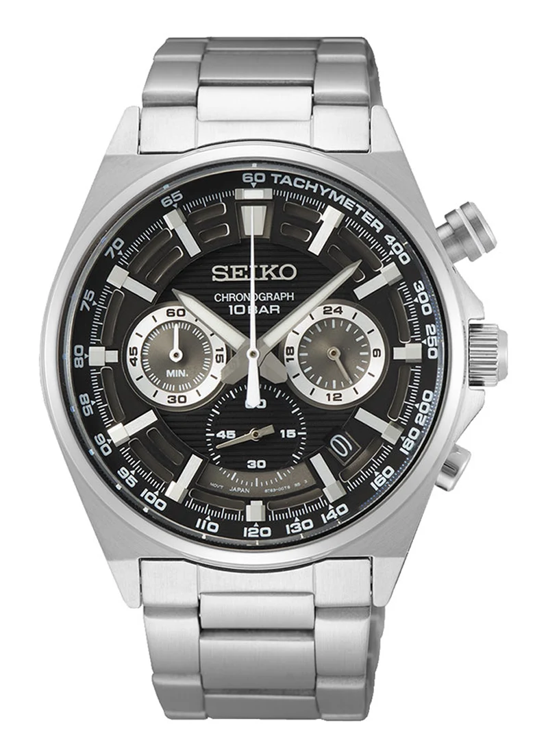 Seiko Chronograph SSB397P1 je vyroben z nerezové oceli, která poskytuje vynikající odolnost proti poškrábání a korozi. Funkční design a sportovní linie pouzdra i náramku, stejně jako ciferník s 3D hloubkovým efektem dělají z těchto hodinek atraktivní nabídku pro muže, kteří ocení moderní design a vysokou kvalitu. Celé hodinky jsou vodotěsné do 10 barů, 100 metrů, což znamená, že s nimi můžete plavat v bazénu a dokonce se s nimi i potápět. Indexy a indikace jsou potaženy Lumibritem, který ve tmě svítí. Ciferník je chráněn tvrzeným minerálním sklem Hardlex. Kolem kulatého ciferníku vykresluje další kruh úzký leštěný prsten, který dodává eleganci.