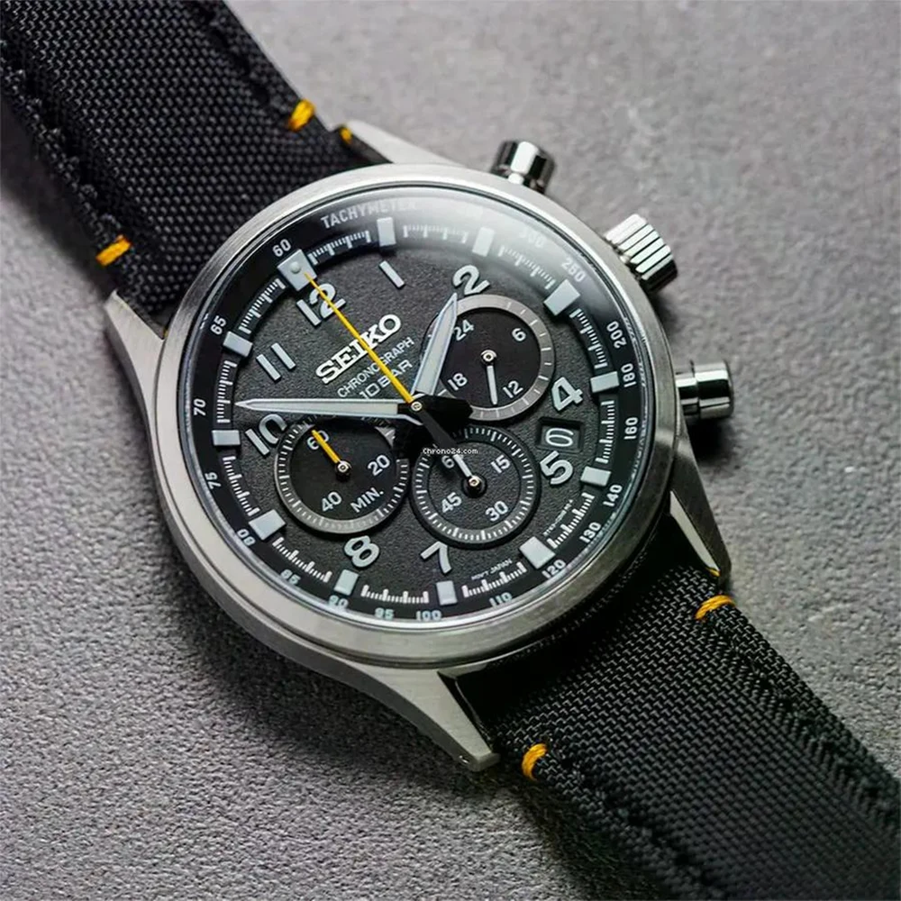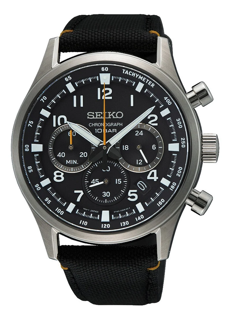 Seiko Chronograph SSB449P1 vznikl s ohledem na uživatele, kteří očekávají čitelnost a funkčnost i v rychlém tempu dne. Jeho výrazný černý ciferník ve stylu field watch nabízí okamžitou čitelnost díky velkým arabským číslicím a silným kontrastům oraz charakteristické architekturze tří subciferníků typické pro chronografy.