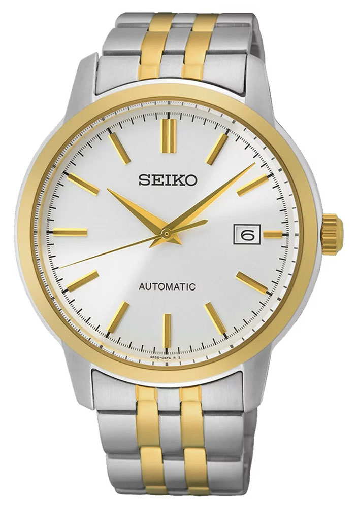 Pod tvrzeným minerálním sklíčkem se nachází stříbrný elegantní číselník. Čas lze odečítat díky pozlaceným ručičkám dýky a štíhlým indexům. Na 3 hodiny umístil výrobce datumové okno s aktuálním dnem v měsíci. Nápis Automatic vám má připomenout vnitřek hodinek, protože hodinky fungují díky Seiko 4R35 - jde o automatický Machineek, který je poháněn pohybem zápěstí. Disponuje rezervou chodu až 41 hodin , což vám umožňuje dočasně přestat používat hodinky bez obav, že přestanou fungovat.