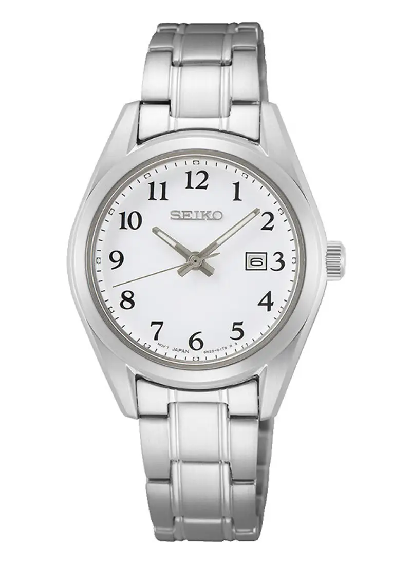 Dámské hodinky Seiko Classic SUR465P1 jsou určeny pro ženy, které si cení tradiční styl a vysokou čitelnost ciferníku. Klasický bílý číselník s kompletní sadou arabských číslic tento model odlišuje mezi minimalistickými časomírami a dodává mu každodenní eleganci.