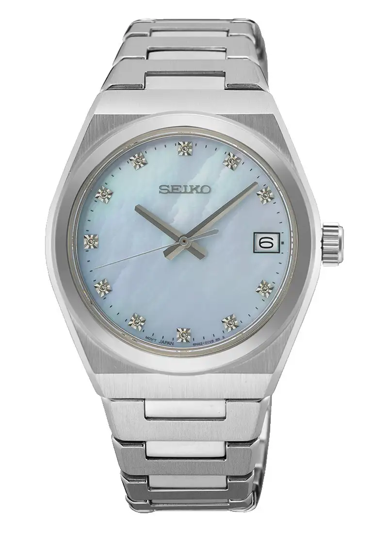 Dámské hodinky Seiko Classic SUR603P1 prezentují jemnou eleganci díky ciferníku z perleti, na kterém je namísto indexů osazeno jedenáct zářivých diamantů. Přirozené odlesky perleti vytvářejí na ciferníku výjimečnou hru světla, která podtrhuje jeho šperkový charakter a delikátní styl.