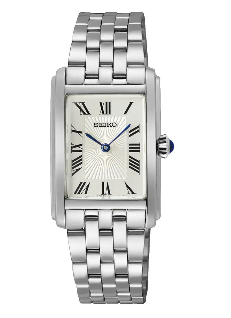 Dámské hodinky Seiko Classic SWR083P1 jsou elegantní volbou v klasickém stylu, která vyniká jemným obdélníkovým pouzdrem a nadčasovým náramkem z drobných článků. Jde o model vytvořený pro ženy, které ocení subtilnost, vysokou kvalitu zpracování a čitelný, tradiční design.