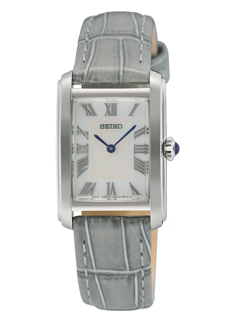 Zegarek damski Seiko Classic SWR099P1 łączy klasyczne wzornictwo z subtelnym biżuteryjnym charakterem, tworząc elegancki czasomierz dla kobiet poszukujących wyrafinowanej, ponadczasowej estetyki. Prostokątna koperta o wymiarach 22,2 × 33,1 mm harmonizuje z delikatnie wygiętym szkłem Hardlex, co podkreśla retro styl i dodaje projektowi elegancji.