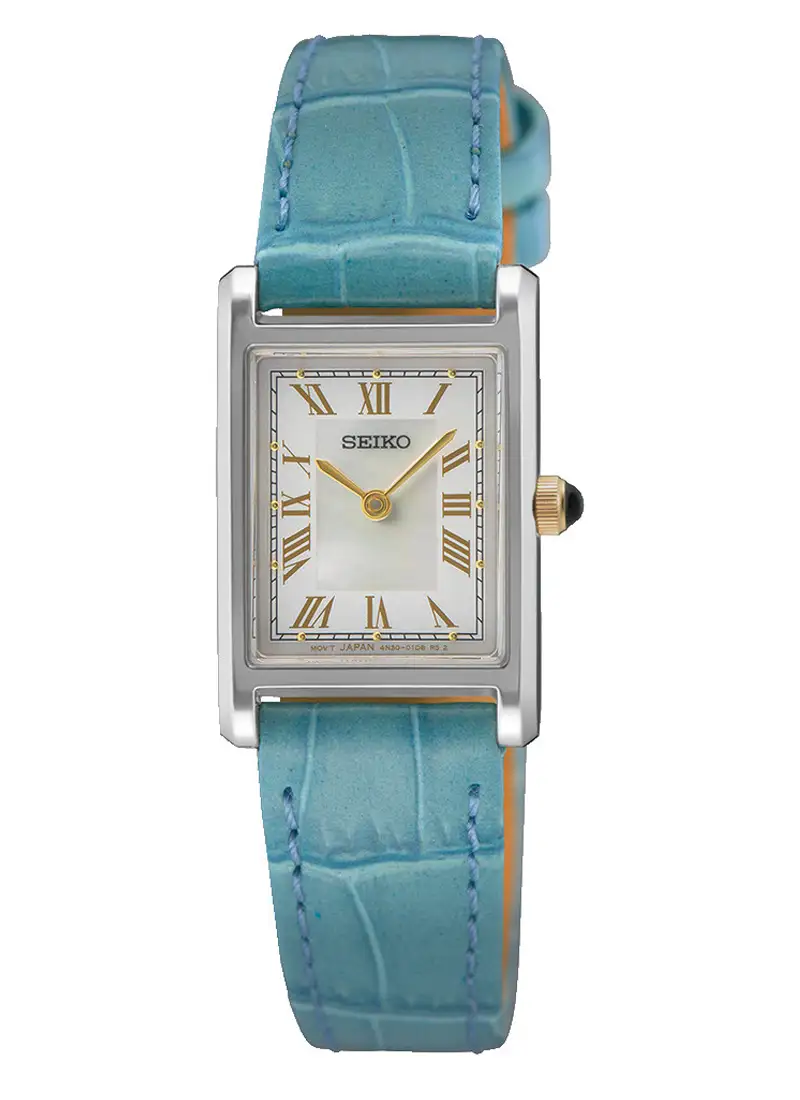 Dámské hodinky Seiko Classic SWR101P1 jsou subtilní model s výrazně šperkařským charakterem, vytvořený pro ženy, které si cení klasických forem, ale rády podtrhnou svůj styl lehkým akcentem barvy. Obdélníkové, štíhlé pouzdro v ocelovém odstínu spolu se světlým ciferníkem a zlatými římskými indexy tvoří elegantní a harmonický projekt inspirovaný tradičním hodinářstvím.