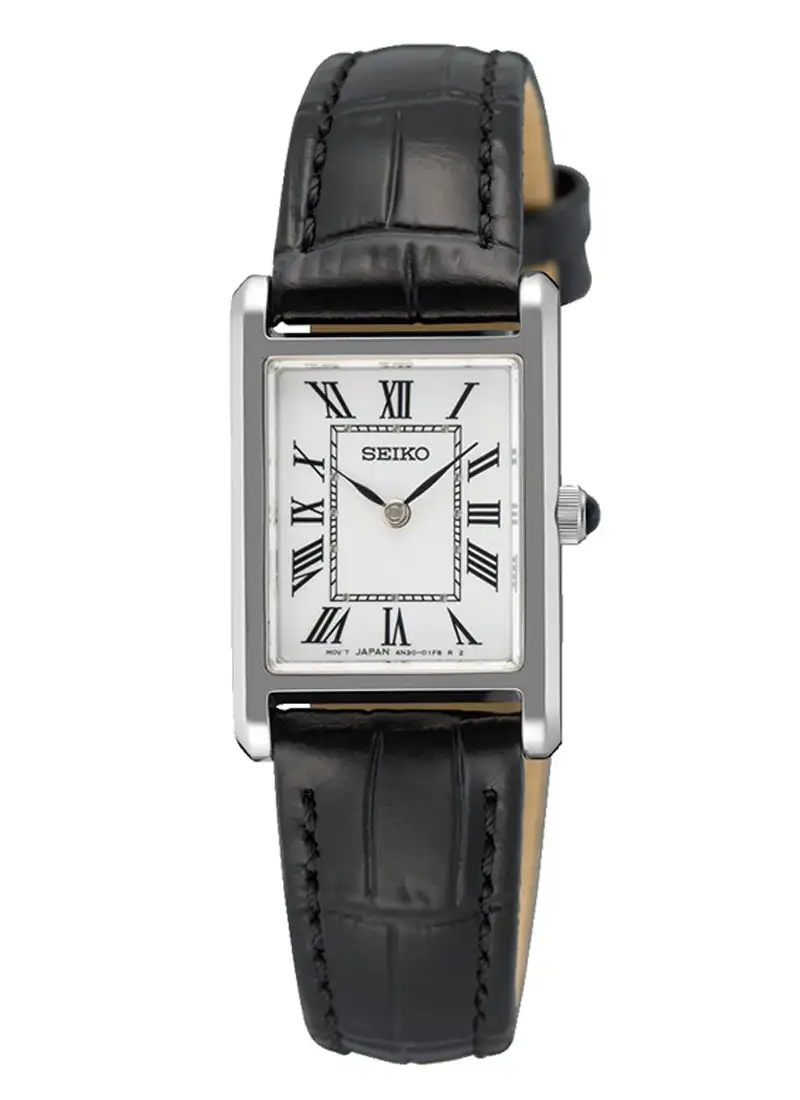 Výjimečné dámské hodinky Seiko Classic SWR107P1 představují eleganci v té nejčistší podobě, inspirovanou estetikou tradičních časomír s obdélníkovým pouzdrem. Jemný bílý ciferník, štíhlé ručky a římské číslice vytvářejí model, který harmonicky spojuje minimalismus s nadčasovou klasikou.
