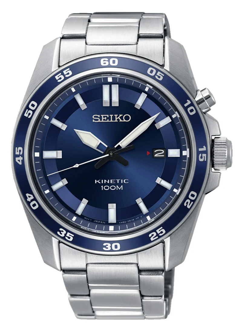 Seiko Kinetic SKA783P1 je volbou pro ty, kteří hledají hodinky praktické, vizuálně výrazné a vybavené pokročilou technologií napájení. Modrý ciferník s intenzivním, hlubokým leskem skvěle ladí s ocelovým náramkem a podtrhuje charakter modelu jako sportovně-elegantního časoměřiče pro každý den.