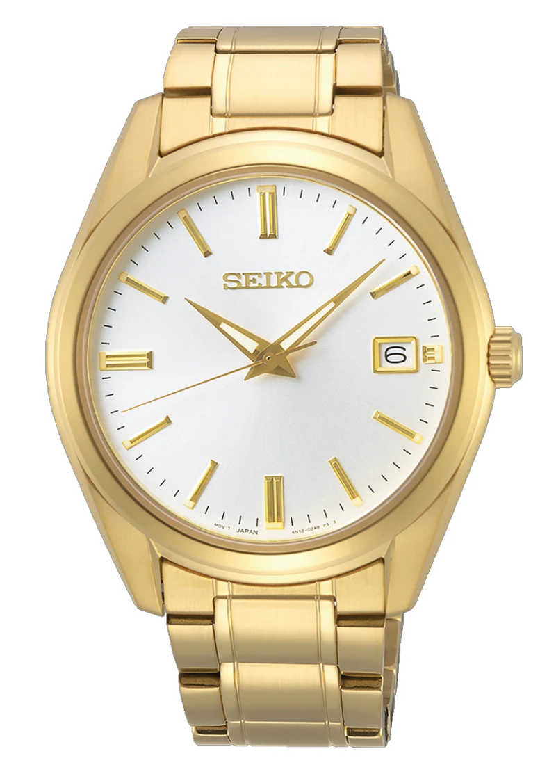 Klasické pozlacené pánské hodinky Seiko New Link SUR314P1. Všestranný model, který se hodí pro každodenní i formální situace. Jeho pouzdro je vyrobeno z odolné a hypoalergenní nerezové oceli 316L. Z pěti řad náramku jsou tři kartáčované a ostatní leštěné, což dodává elegantní a kreativní nádech. Kartáčování také charakterizuje 40 mm pouzdro, zatímco leští lunetu, čímž je zachována konzistence povrchu. Všechny zlaté povrchy jsou leštěné a nanášené PVD povrchovou úpravou.